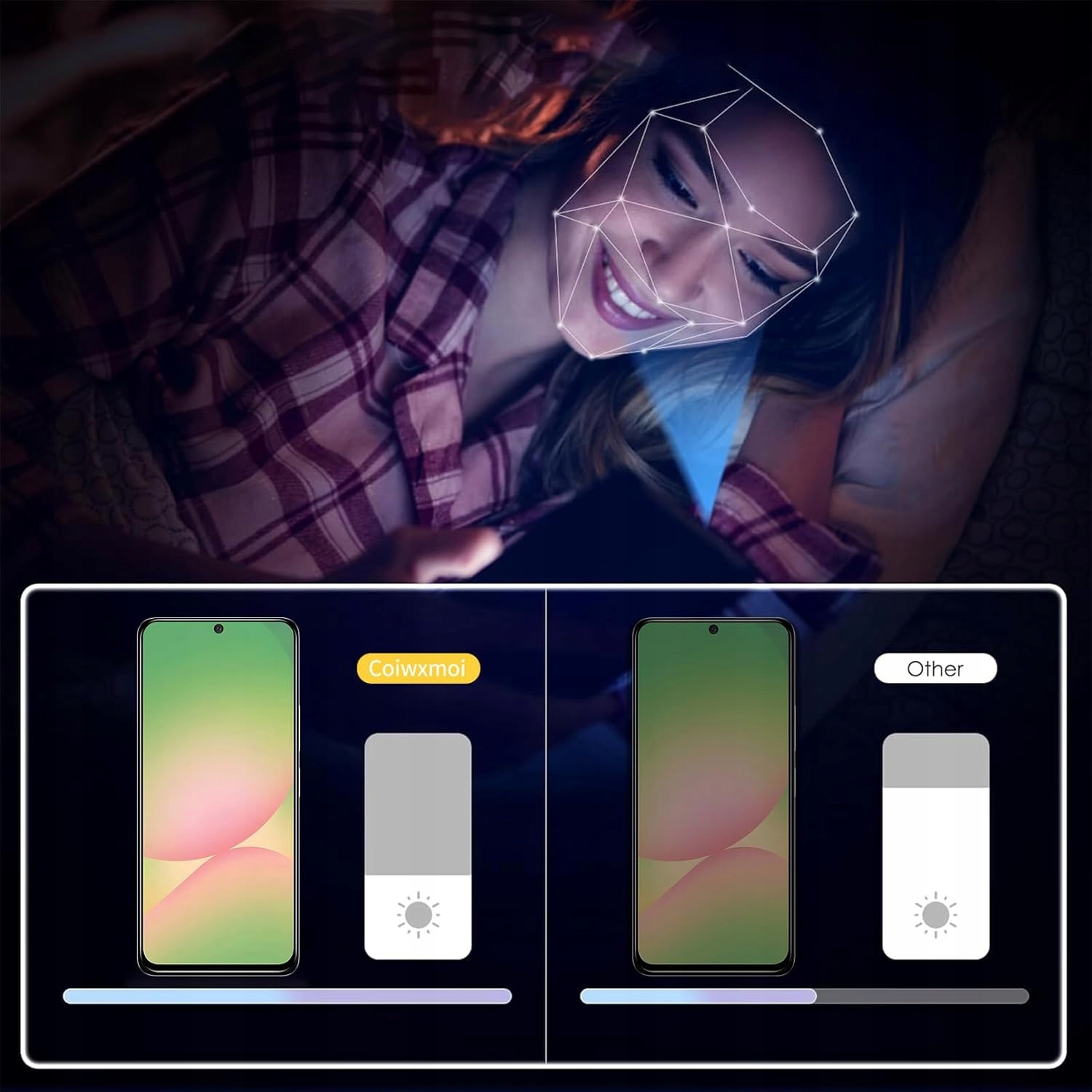 - Ochrona antyodblaskowa zmniejsza zmęczenie wzroku podczas długotrwałego korzystania z telefonów komórkowych.