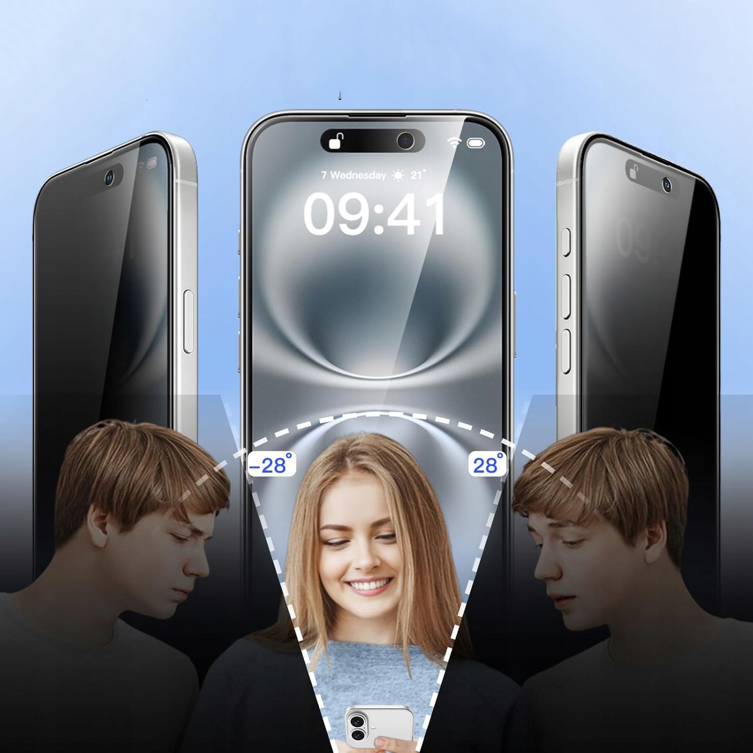 ✅Dzięki specjalnej innowacyjnej technologii szkło prywatyzujące 9D zapewnia doskonałą widoczność pod kątem 90°. Jeśli spojrzysz na ekran pod kątem 30°, szkło ochronne przybiera efekt barwienia, a wyświetlacz staje się czarny.