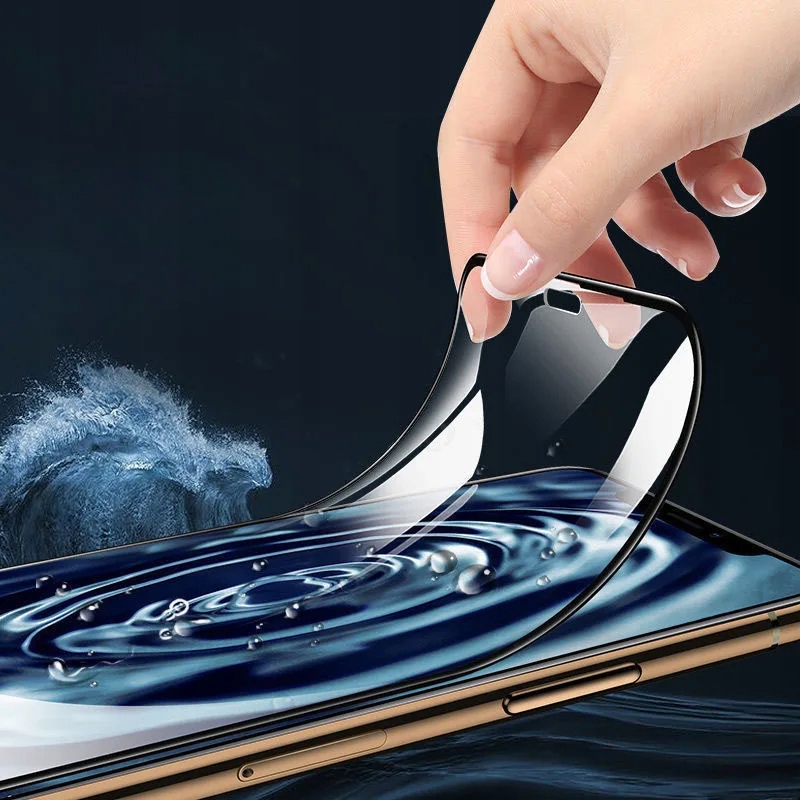 Elastyczne szkło hybrydowe dopasowane do całego ekranu telefonu, posiada czarną ramkę na brzegach .