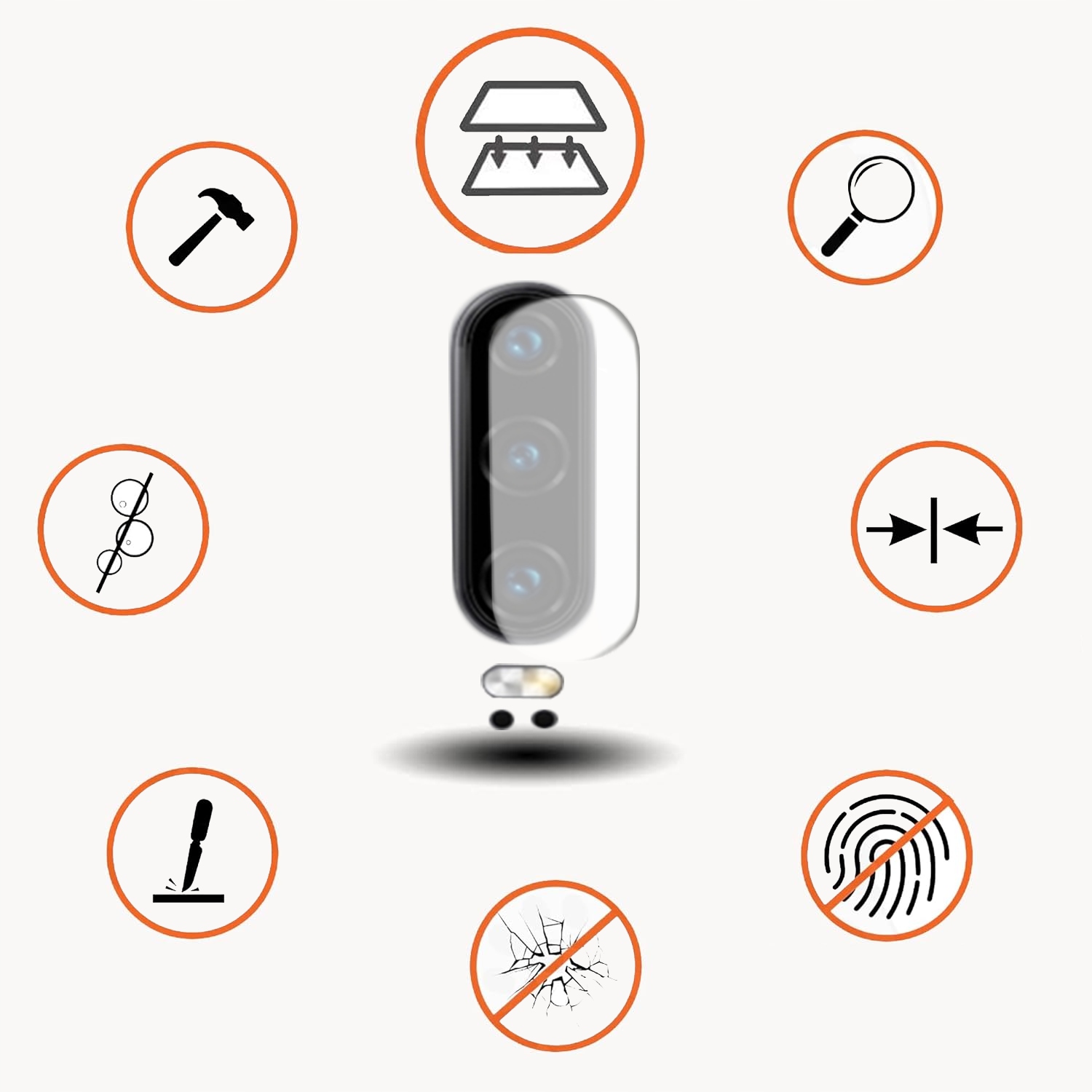 Hartowane szkło skutecznie zabezpiecza aparat przed zarysowaniami, pęknięciami i uszkodzeniami mechanicznymi, zapewniając długotrwałe bezpieczeństwo obiektywu Twojego smartfona.