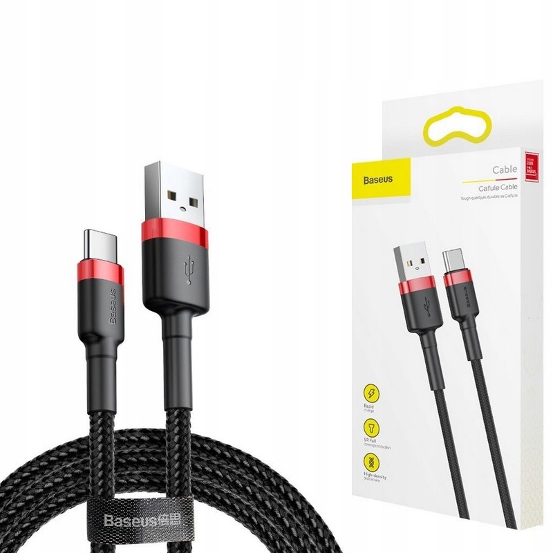 Kabel SZYBKI I MOCNY BASEUS CAFULE USB-C 3A 1M KOLOR CZARNY