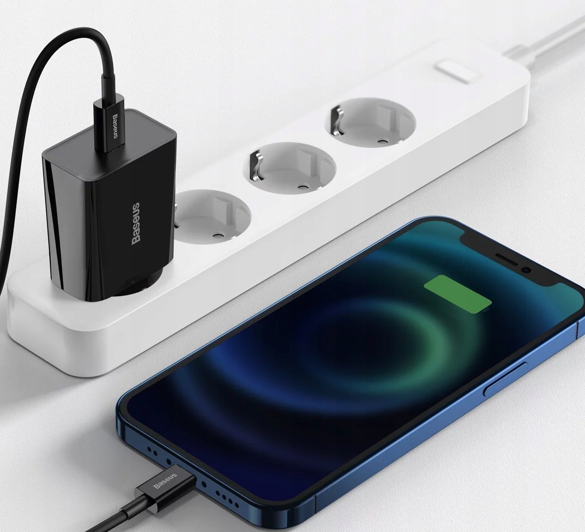 Ładowarka Baseus wyróżnia się kompatybilnością - wystarczy podłączyć do niego kabel USB-C do Lightning lub USB-C do USB-C. Może być używana do zasilania nie tylko smartfonów i tabletów, ale także powerbanków, wentylatorów ręcznych oraz lamp biurkowych.