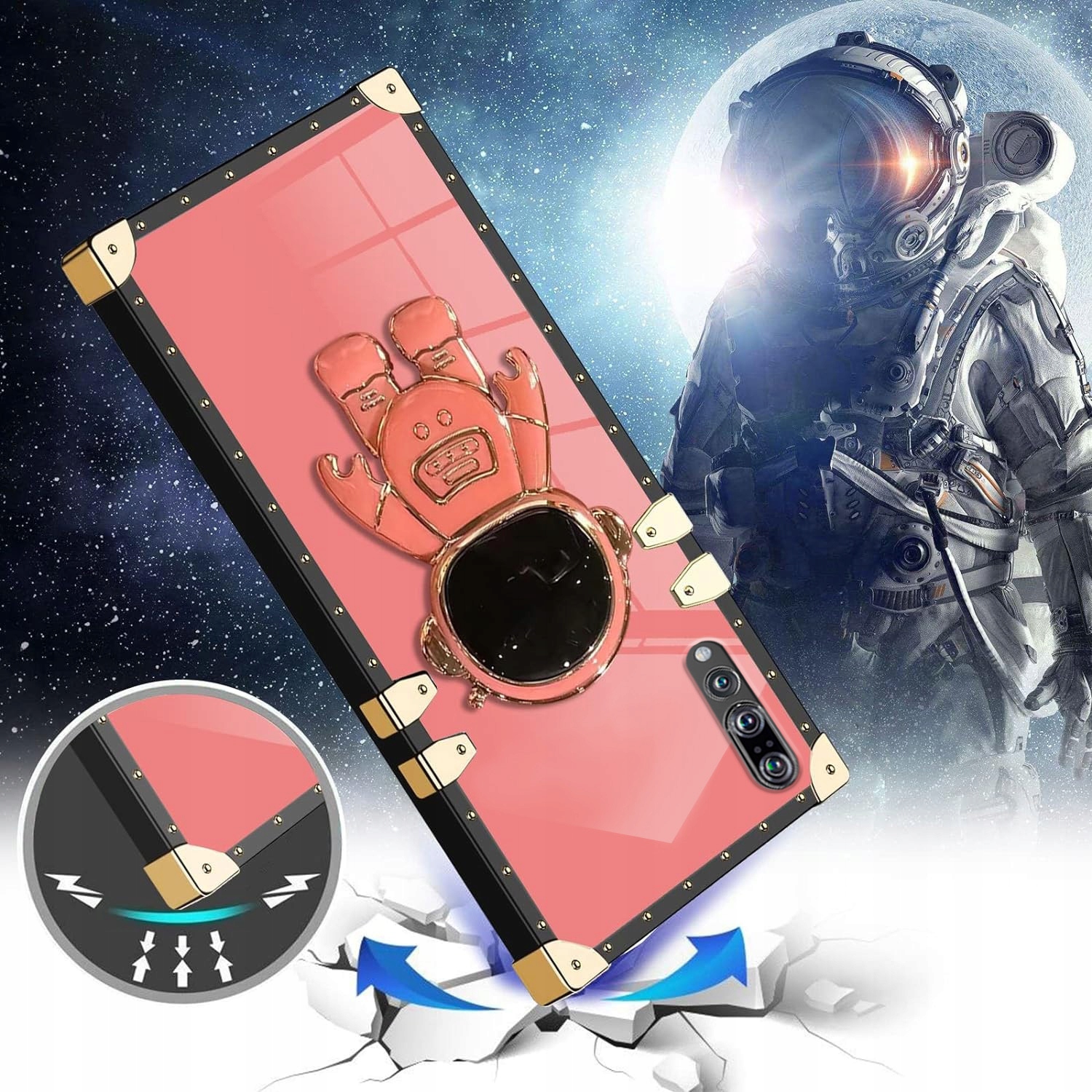 Atrakcyjny design astronauty: Unikalny projekt astronauty 6D i kwadratowe krawędzie z metalowymi narożnikami sprawiają, że Twój telefon jest wyjątkowy, lśniący i przyciągający wzrok.