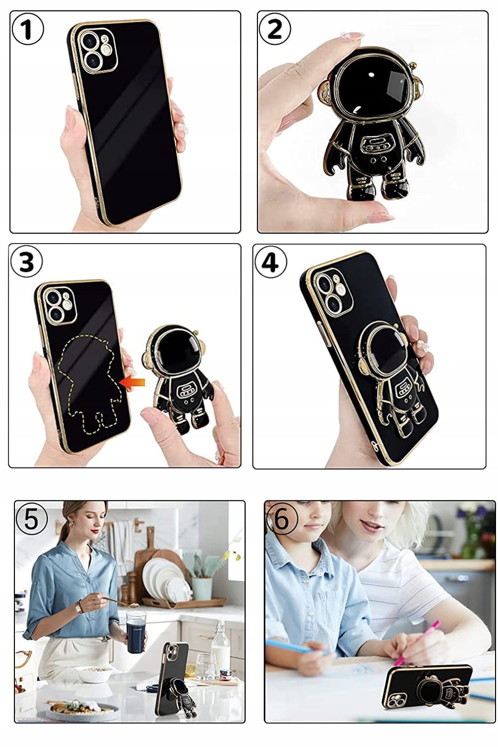 - W Zestawie Stojak w kształcie ASTRONAUTA można używać do rozmów wideo lub oglądania programów w pionie i poziomie, całkowicie uwalniając ręce.