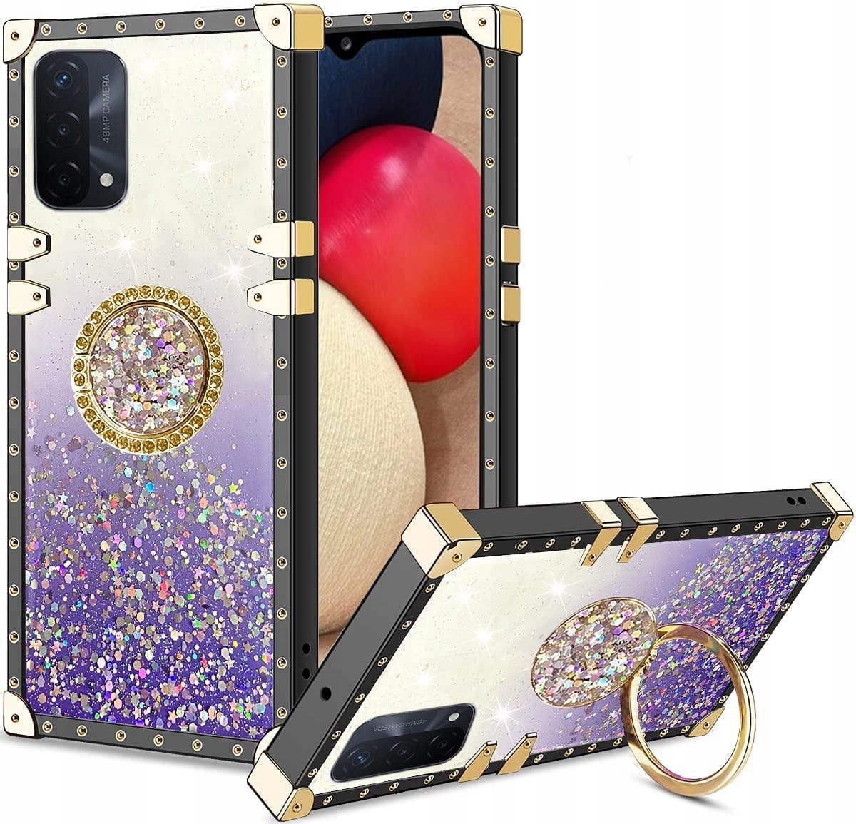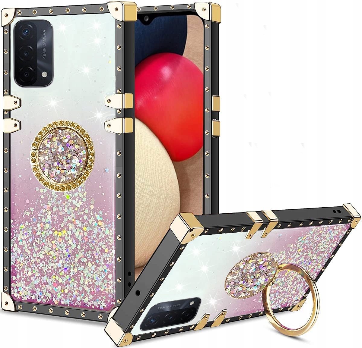 ETUI BROKAT DO OPPO A54 5G / A74 5G / A93 5G MOCNE RING GLITTER + SZKŁO
