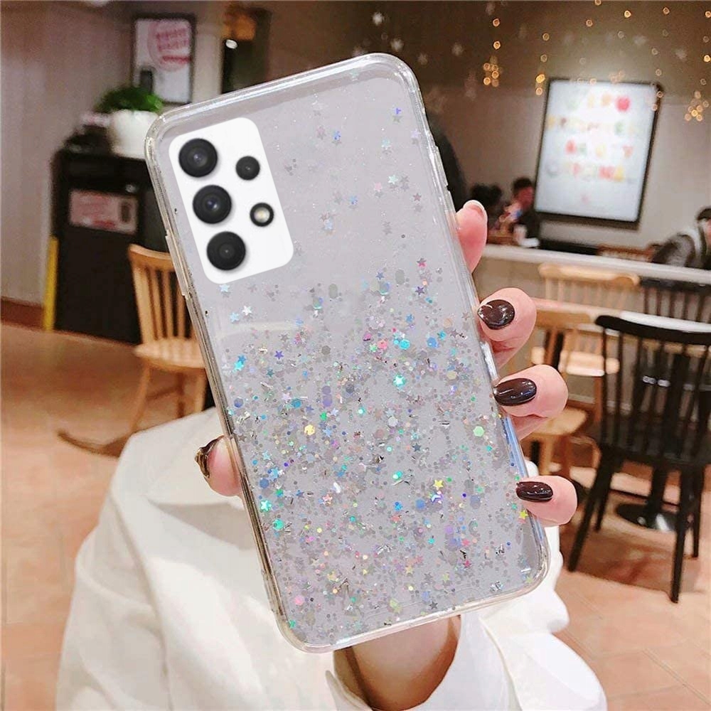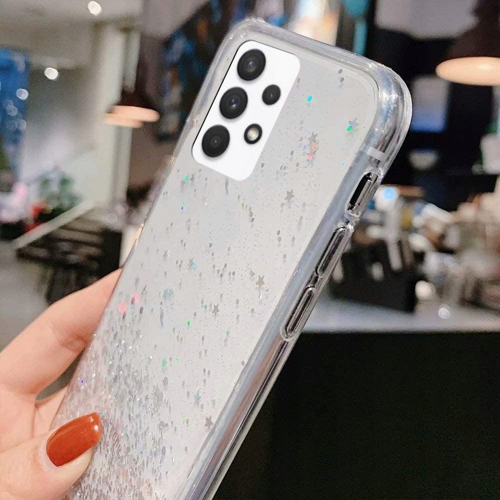 ETUI BROKAT DO SAMSUNG A52 A52 5G GLITTER CLEAR+SZKŁO