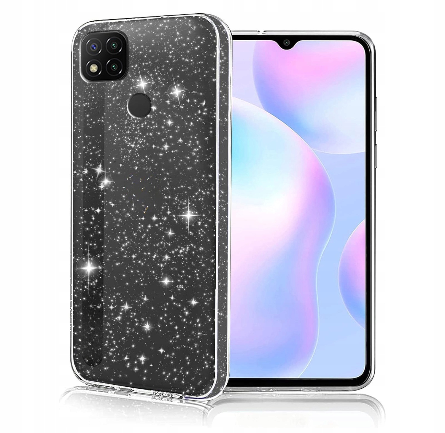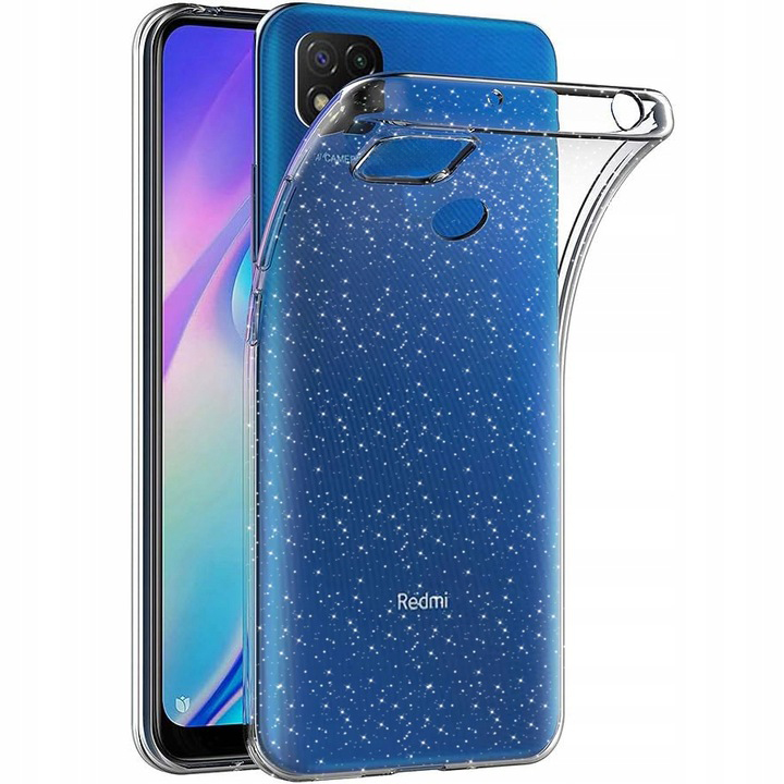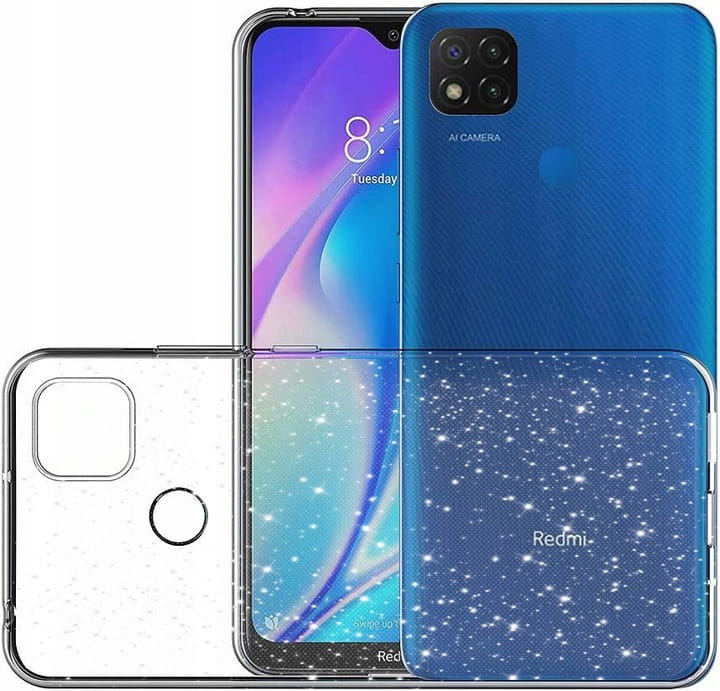 ETUI BROKAT DO XIAOMI REDMI 9C BEZBARWNY SILIKON TPU SLIM CASE + SZKŁO