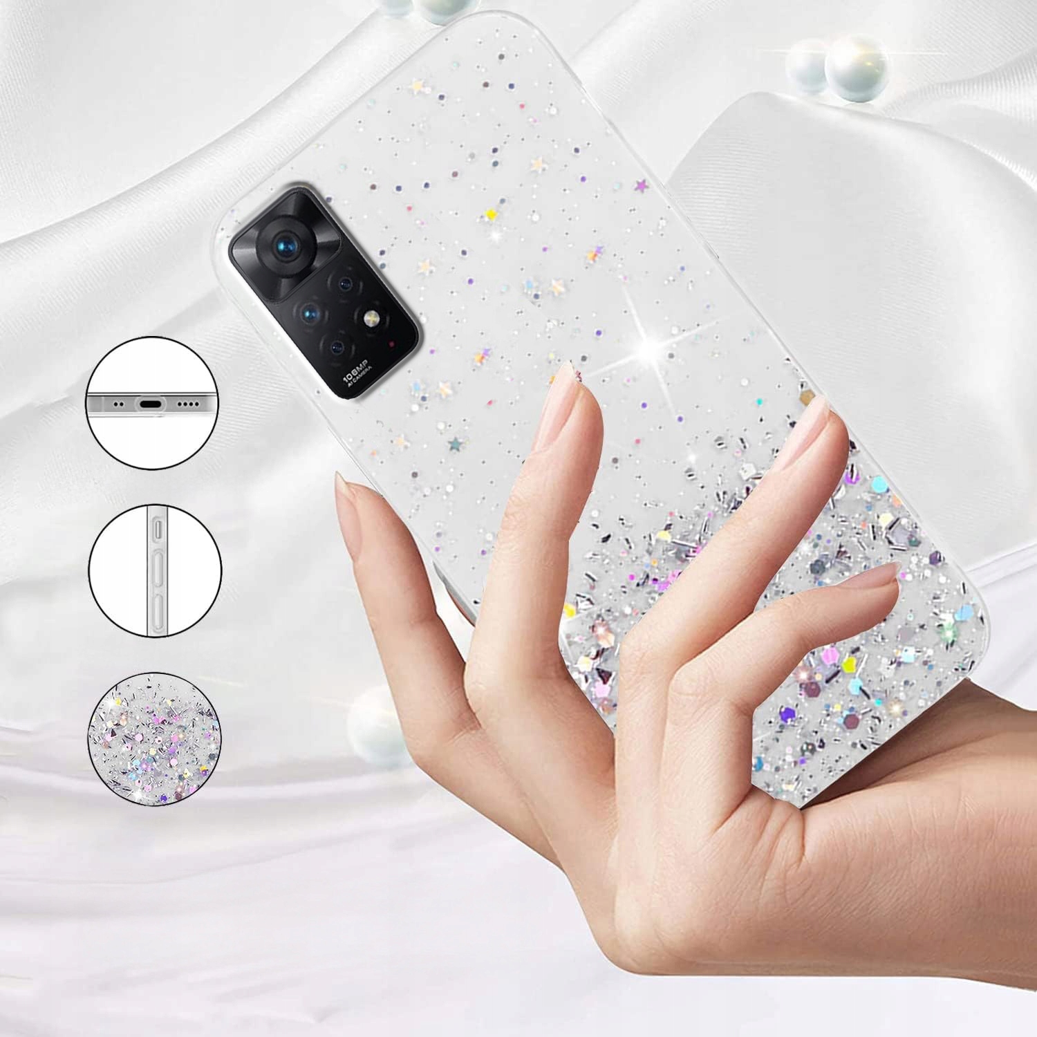 - Hybrydowe etui z warstwą błyszczącego brokatu