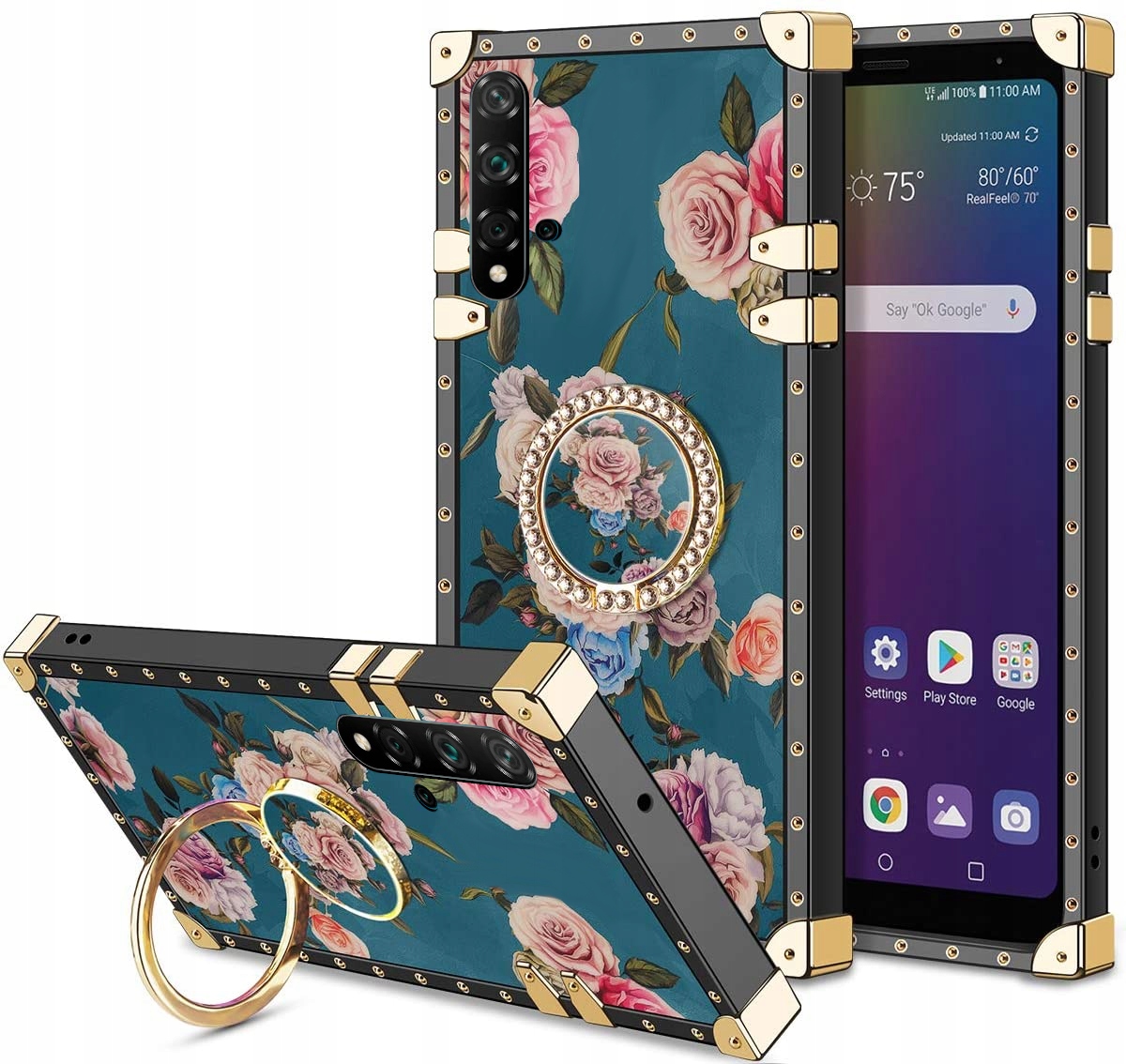 ETUI DO HUAWEI NOVA 5T MOCNE RÓŻE RING + SZKŁO