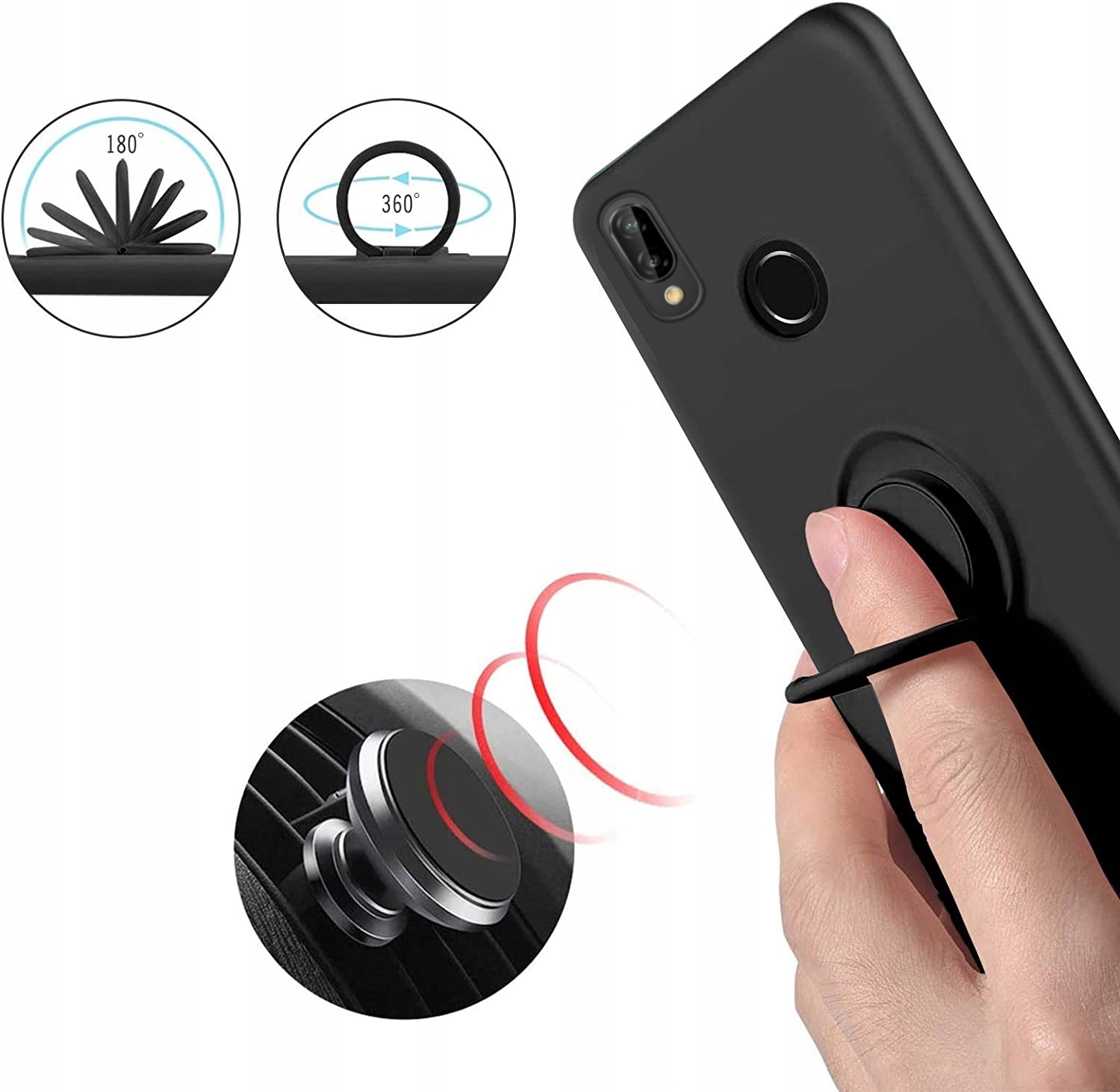 - Magnetyczny ring można bezpośrednio przymocować na magnetycznym uchwycie samochodowym, zapewniając bezproblemową jazdę.