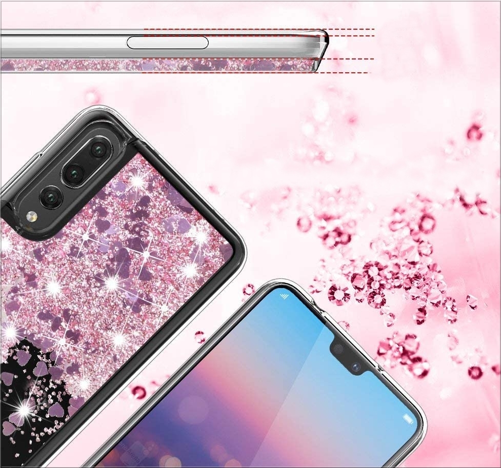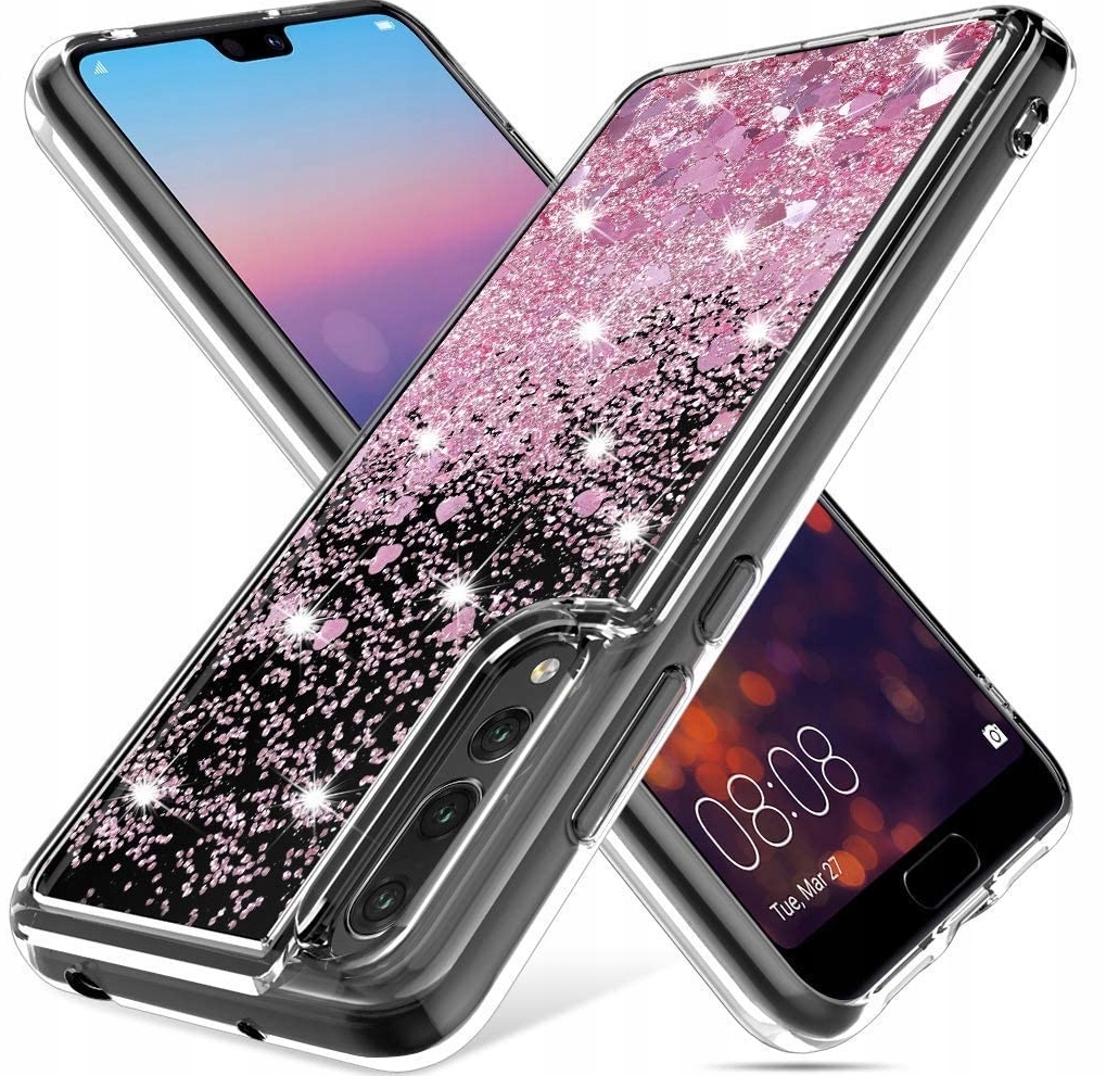 ETUI DO HUAWEI P20 PRO BROKAT LIQUID SILIKON BROKATOWE GLITTER + SZKŁO