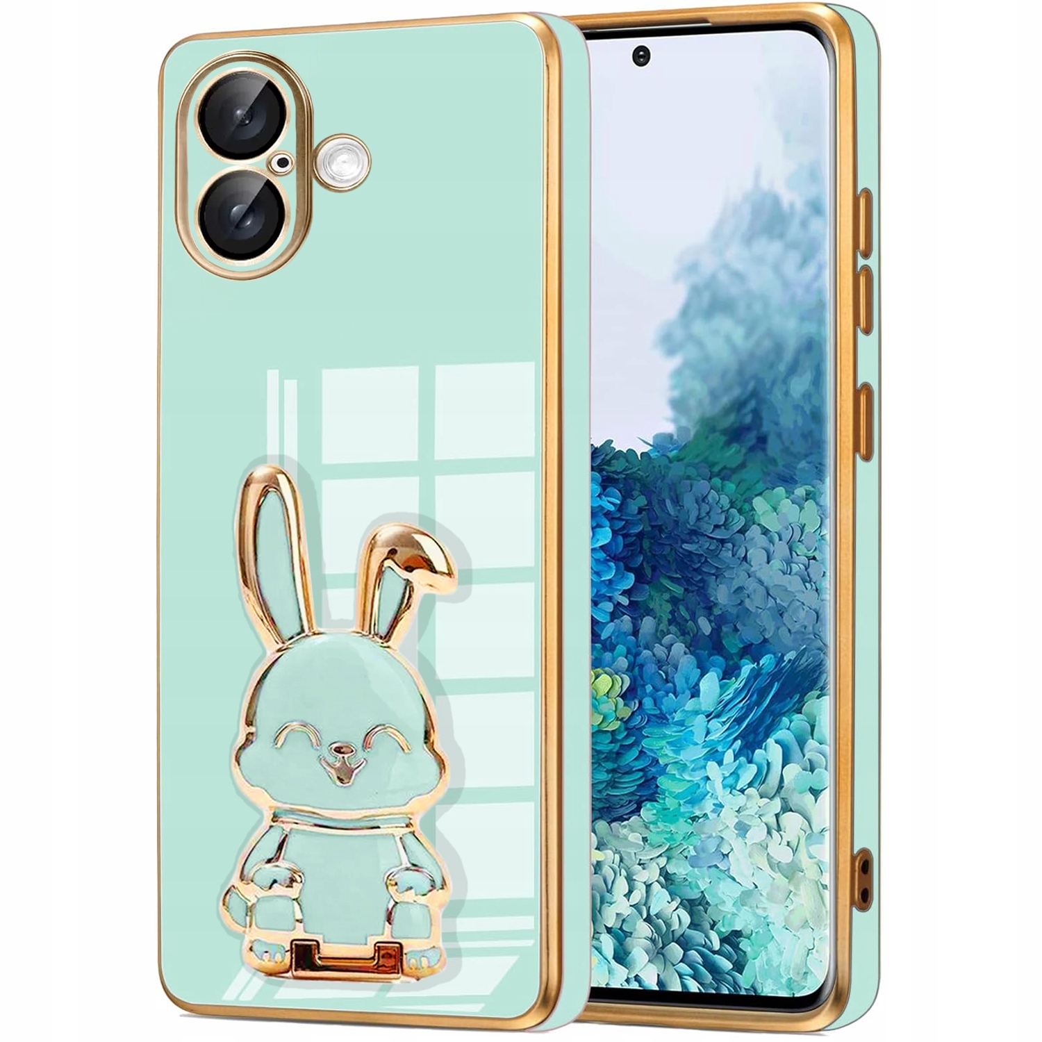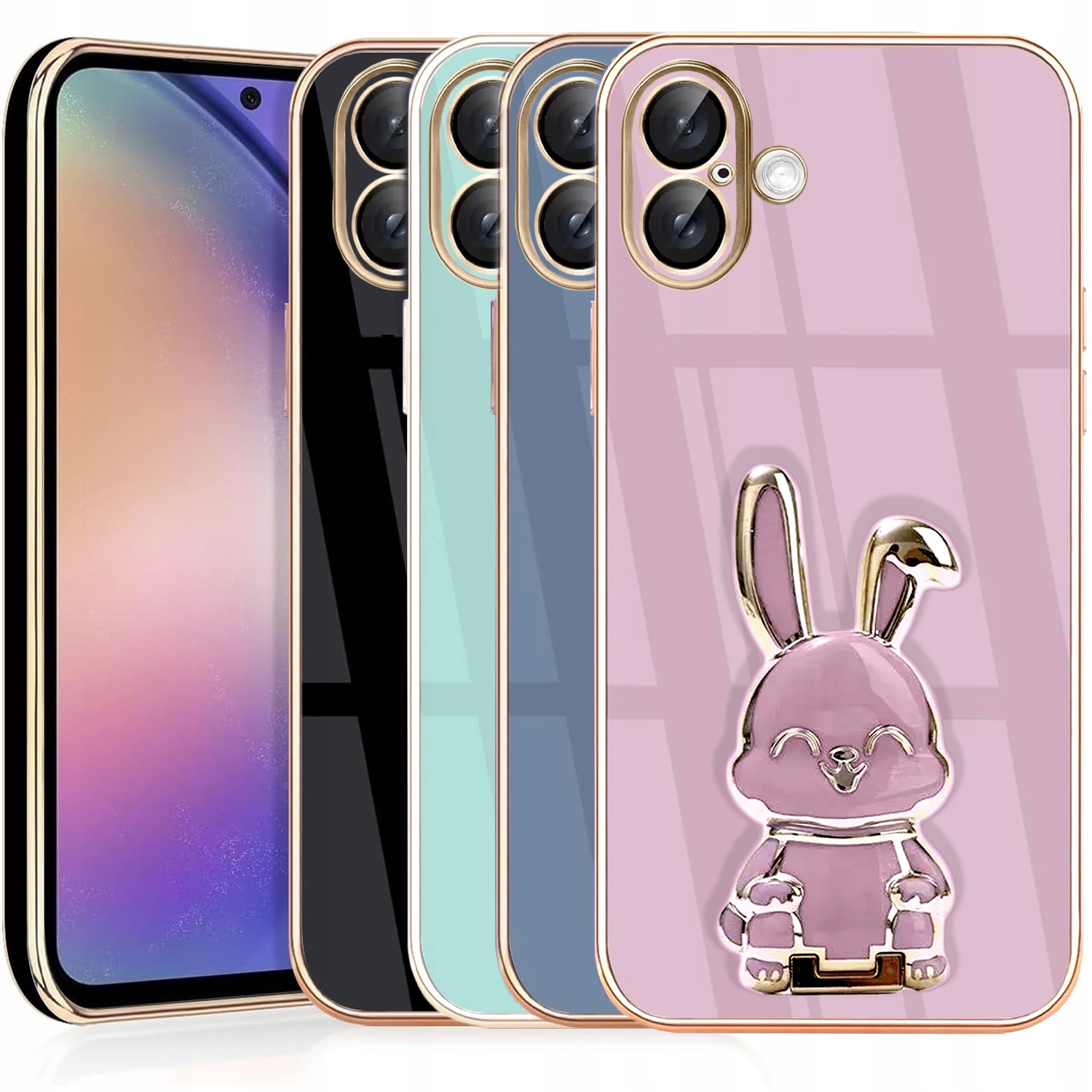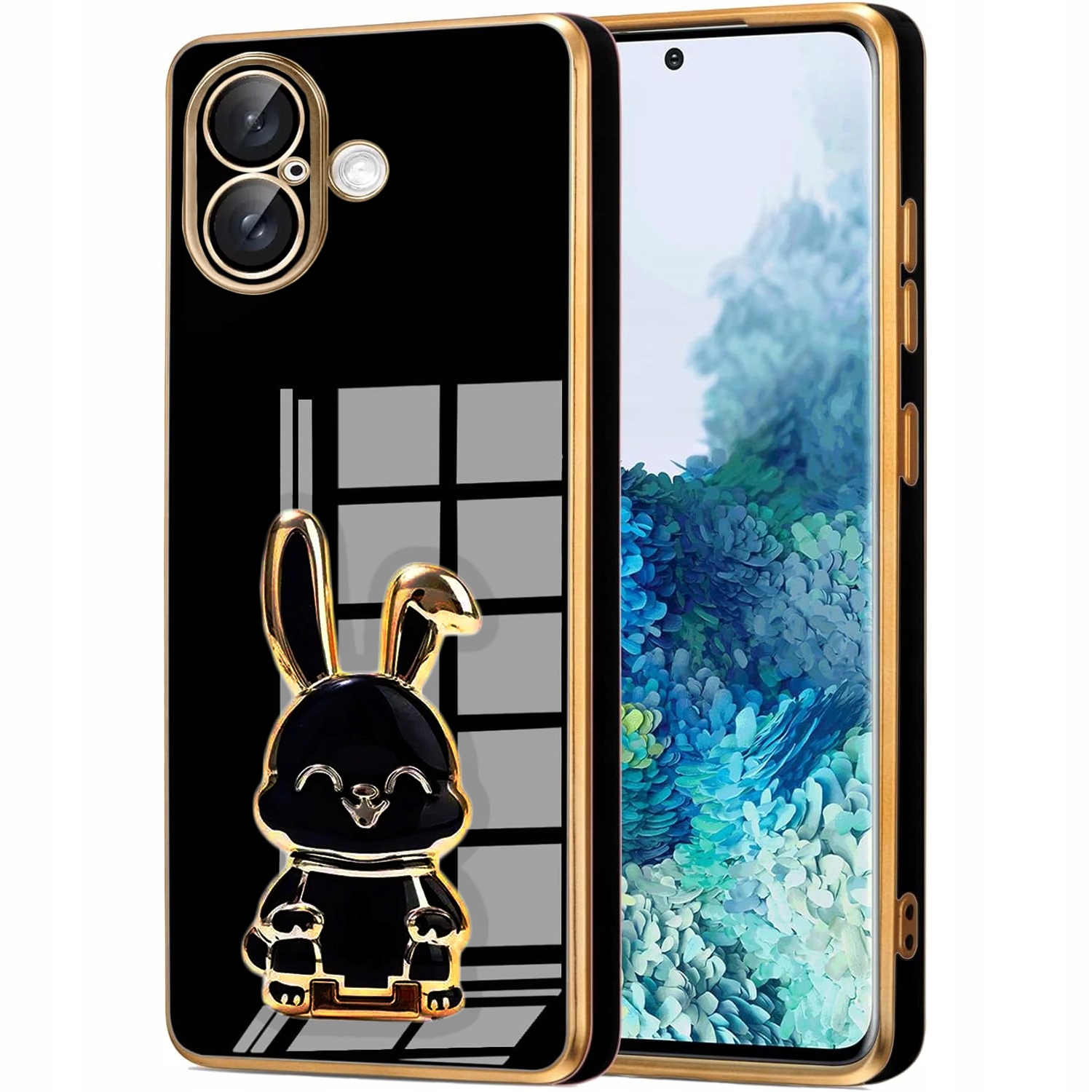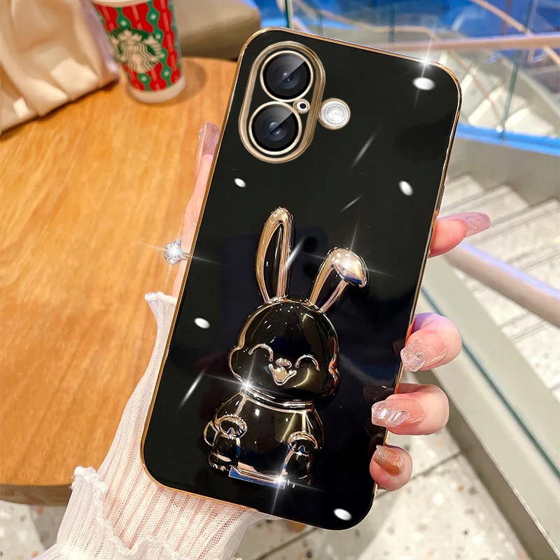 ETUI DO IPHONE 16 GLAMOUR KRÓLIK UCHWYT PODSTAWKA SILIKON CASE 6D + SZKŁO