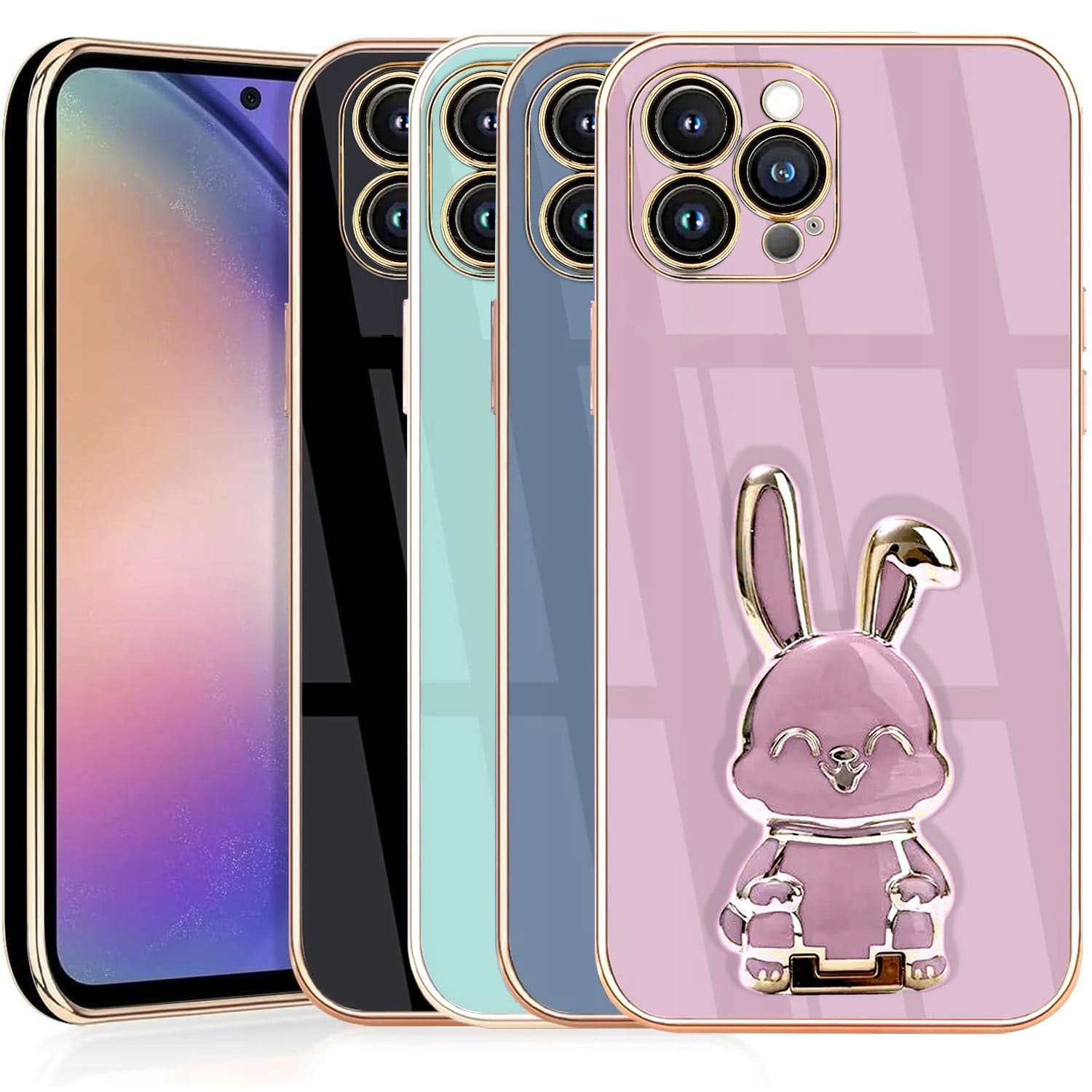 ETUI DO IPHONE 16 PRO GLAMOUR KRÓLIK UCHWYT PODSTAWKA SILIKON CASE + SZKŁO