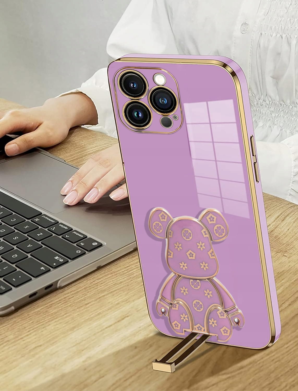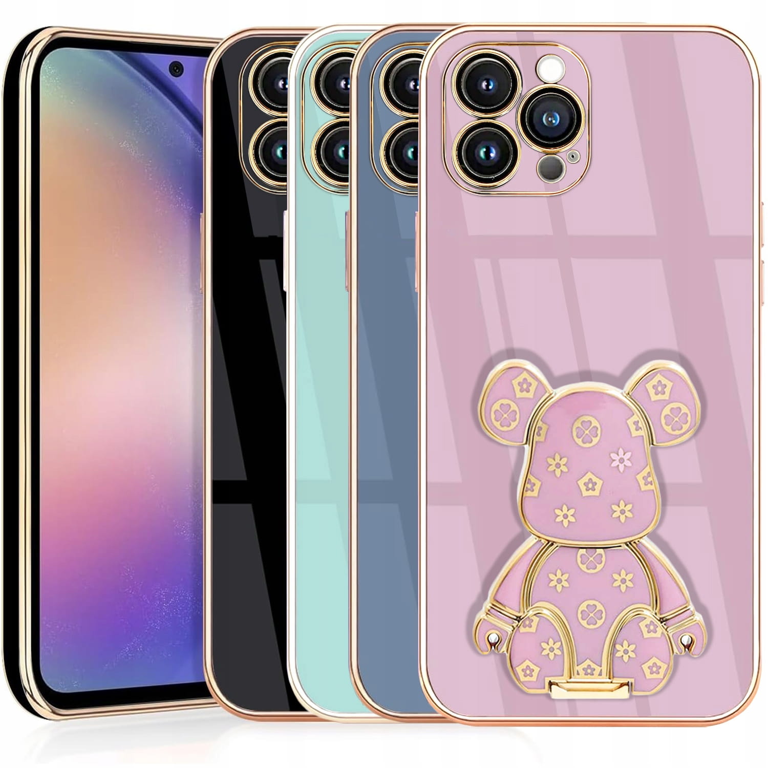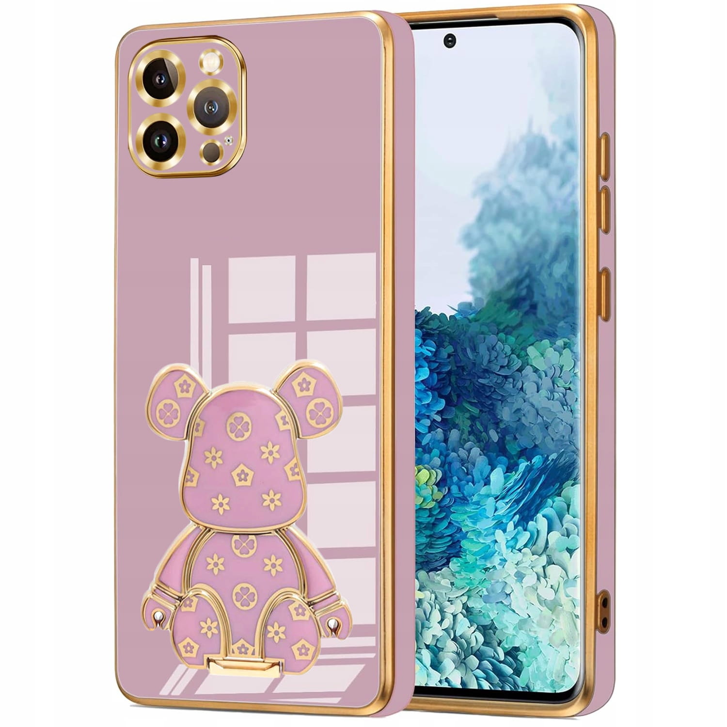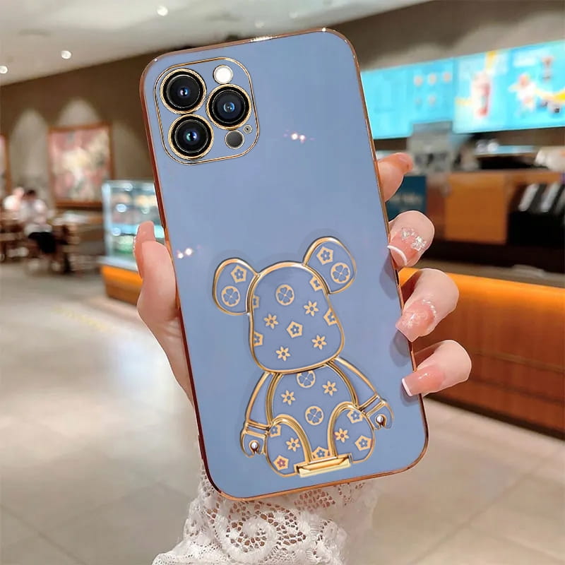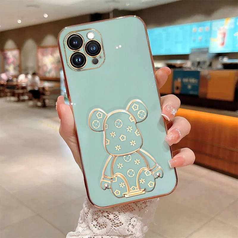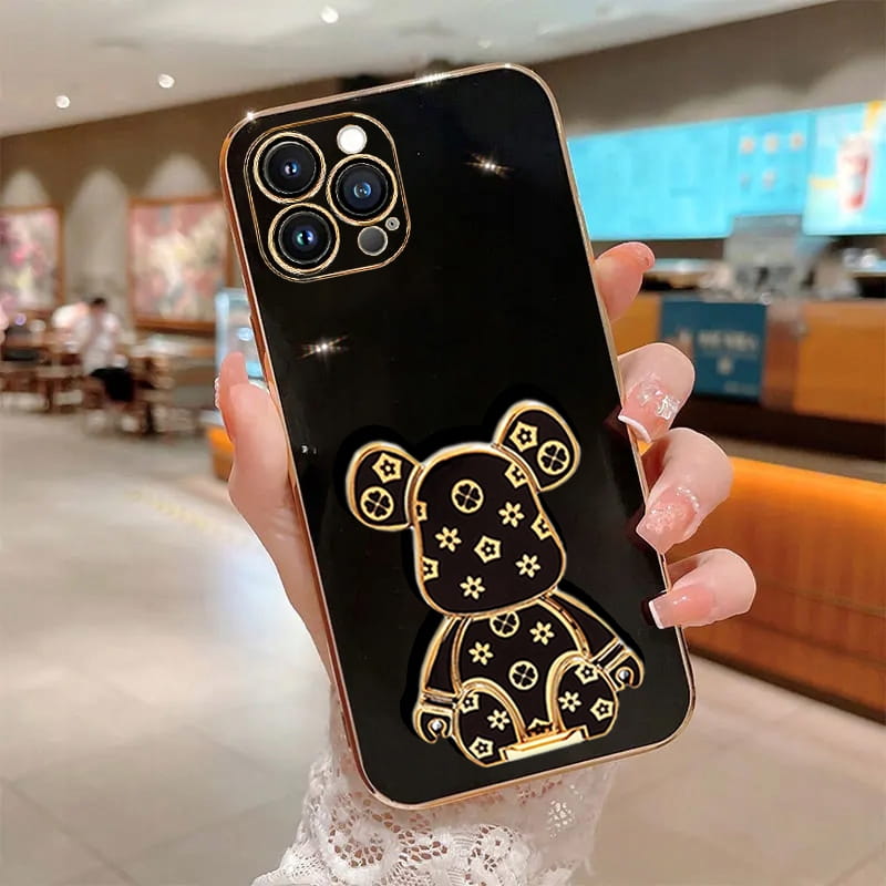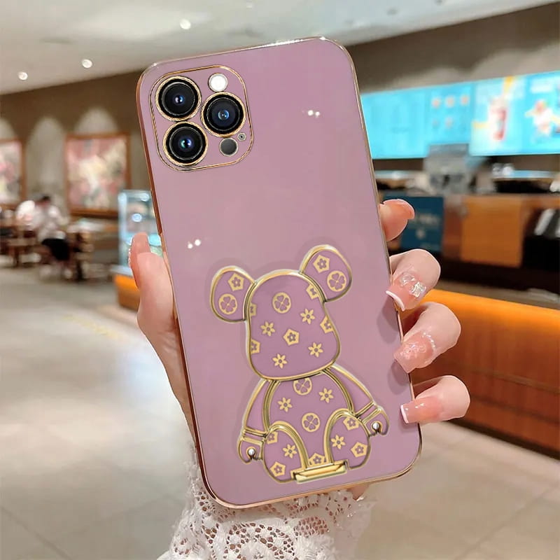 ETUI DO IPHONE 16 PRO GLAMOUR MIŚ UCHWYT PODSTAWKA BEAR 6D SILIKON + SZKŁO