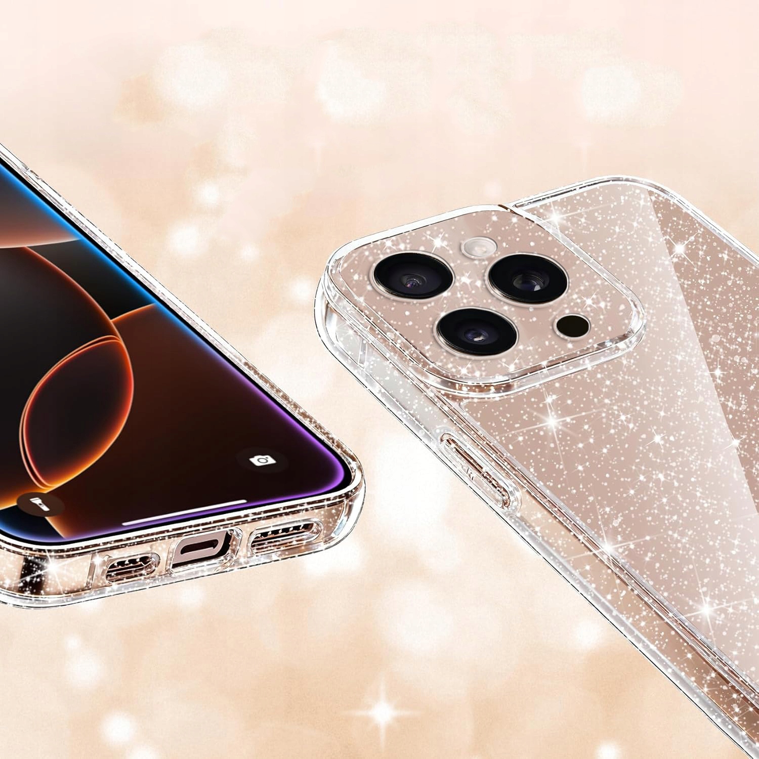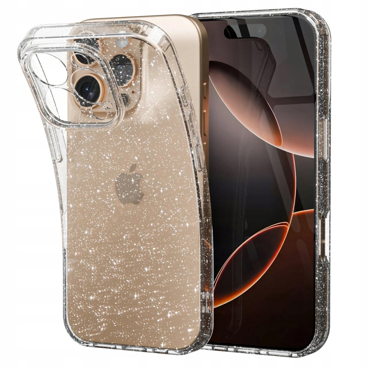 ETUI DO IPHONE 16 PRO Przezroczyste BROKATOWY SILIKON TPU SLIM CASE + SZKŁO