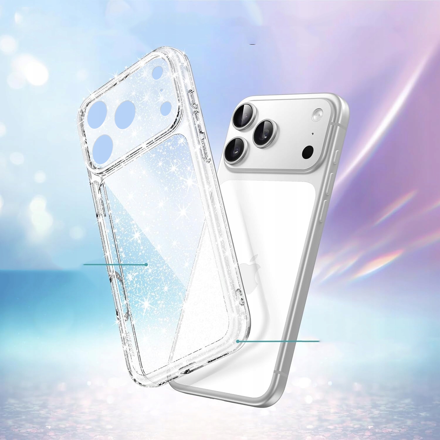 ETUI DO IPHONE 17 PRO Przezroczyste BROKATOWY SILIKON SLIM CASE + SZKŁO