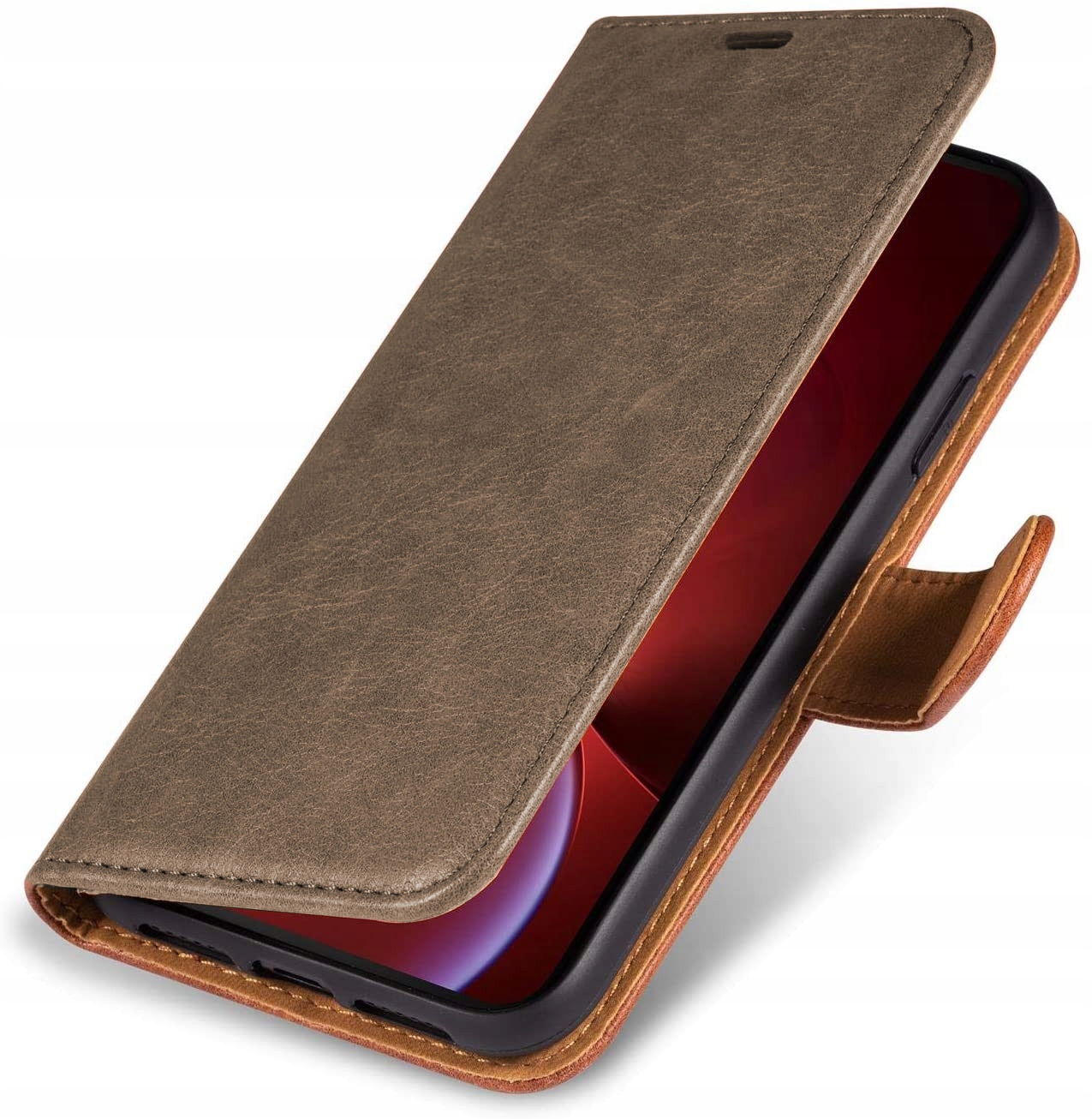 Zamykany futerał w etui to połączenie elegancji i funkcjonalności. Etui wyróżnia się precyzyjnym wykończeniem, a wbudowane zapięcie na magnes zapobiega przypadkowemu wysunięciu się telefonu. Pokrowiec wykonany został z wysokiej jakości skóry ekologicznej, a miękki materiał wewnątrz zabezpiecza telefon przed zarysowaniami. Silikonowe mocowanie pozwala na utrzymanie urządzenia w stabilnej pozycji, chroniąc jego boki. Dodatkowo wyposażony został w kieszonkę umożliwiającą wygodne przechowywanie niezbędnych dokumentów. Kabura posiada podstawkę ,która pozwala na swobodne oglądanie filmów czy przeglądanie internetu. Dzięki idealnemu dopasowaniu do modelu, etui posiada wycięcia na wszystkie gniazda a także specjalne nakładki na przyciski funkcyjne.