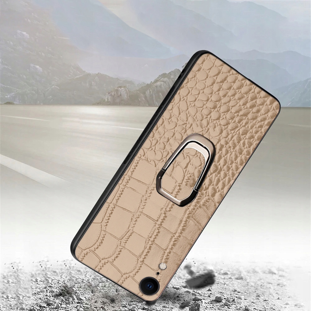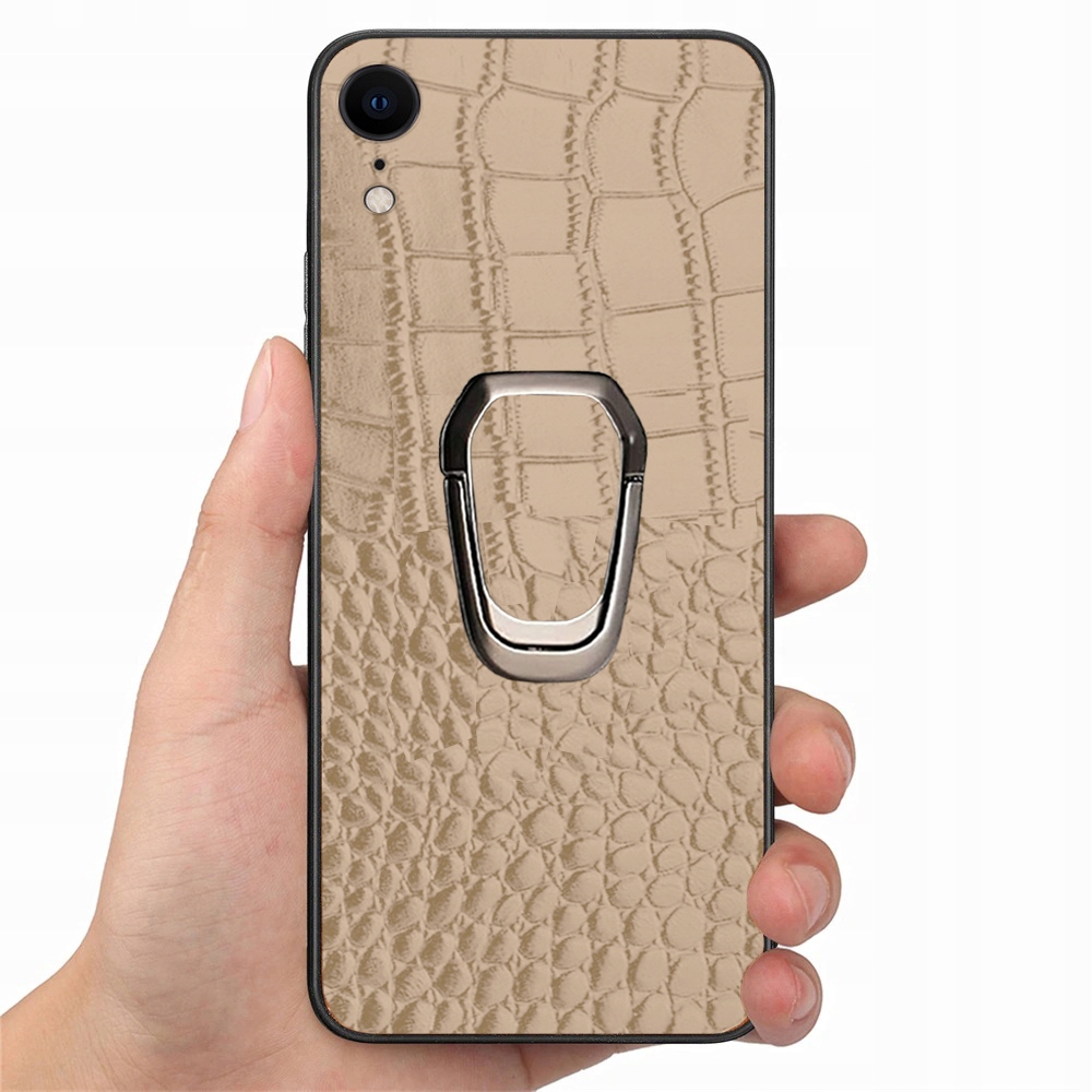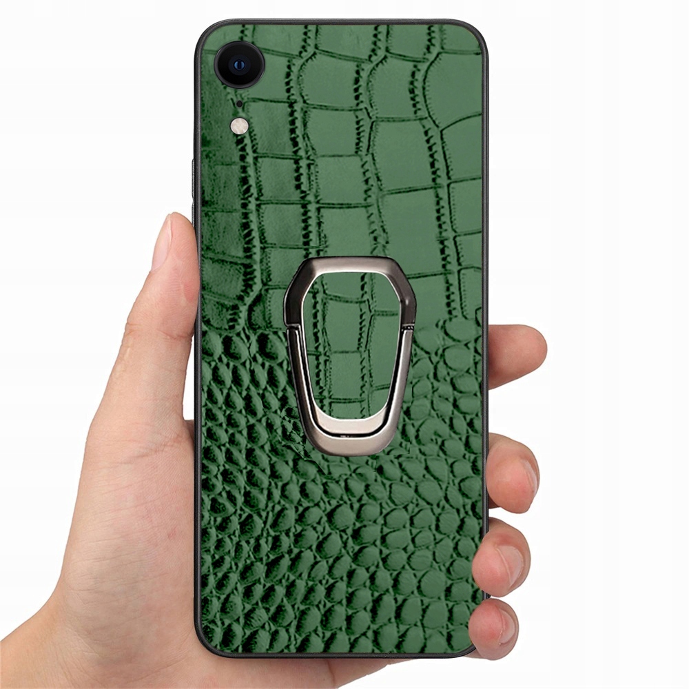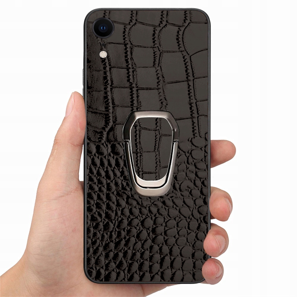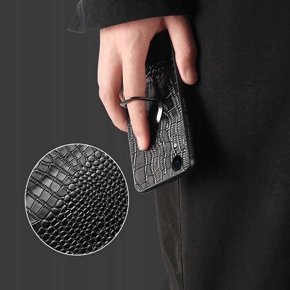 ETUI DO IPHONE XR SKÓRA KROKODYLA SKÓRZANE LUKSUSOWE CASE RING + SZKŁO