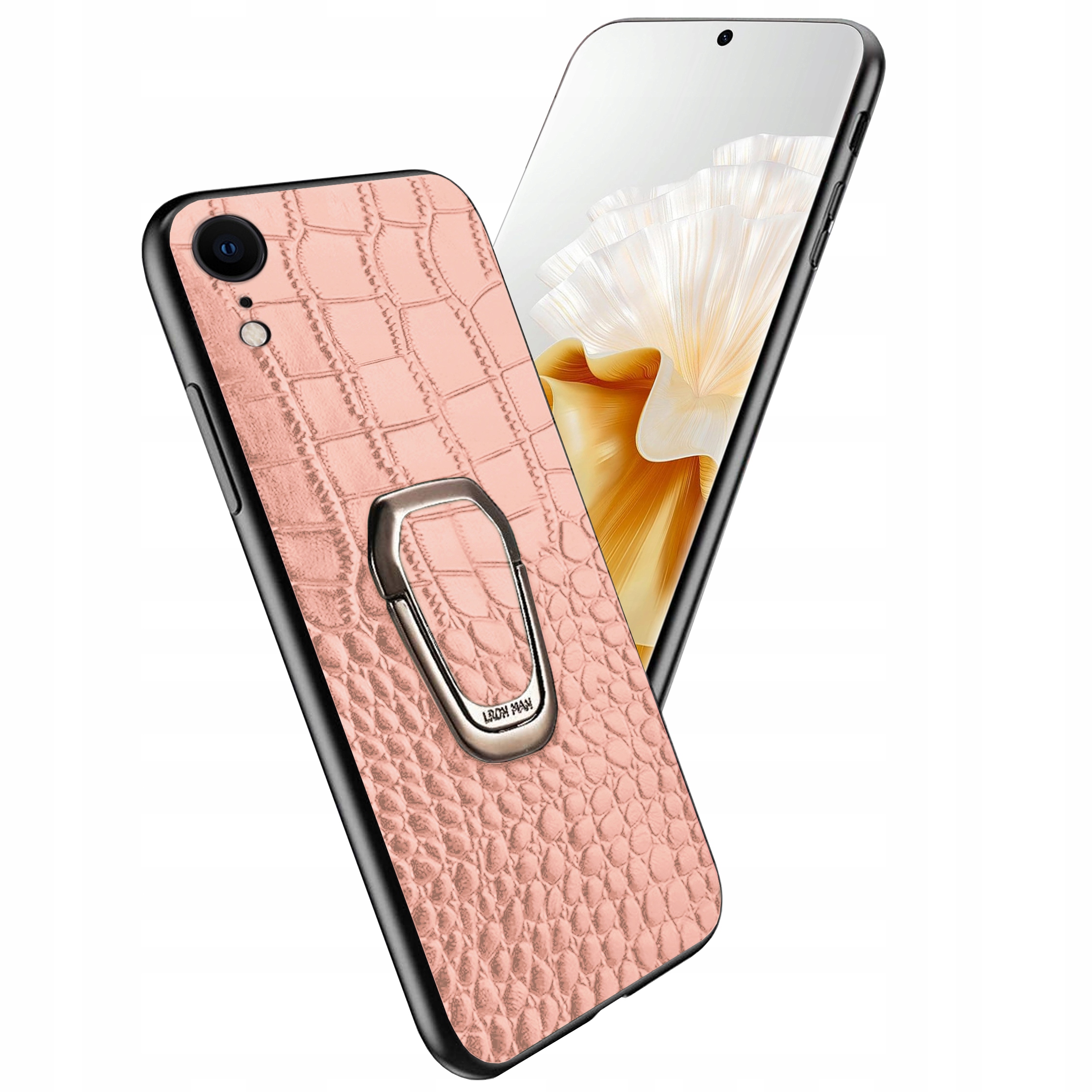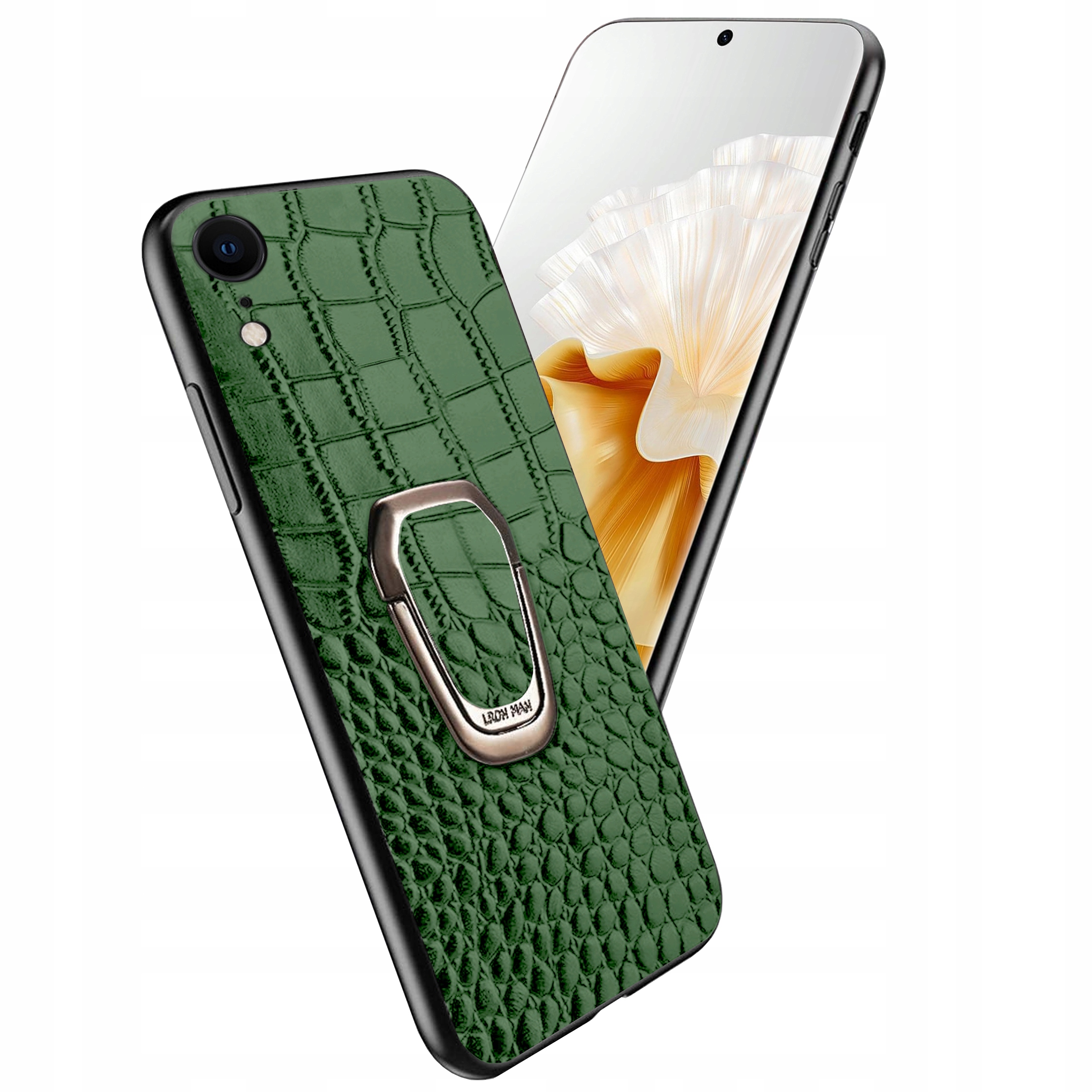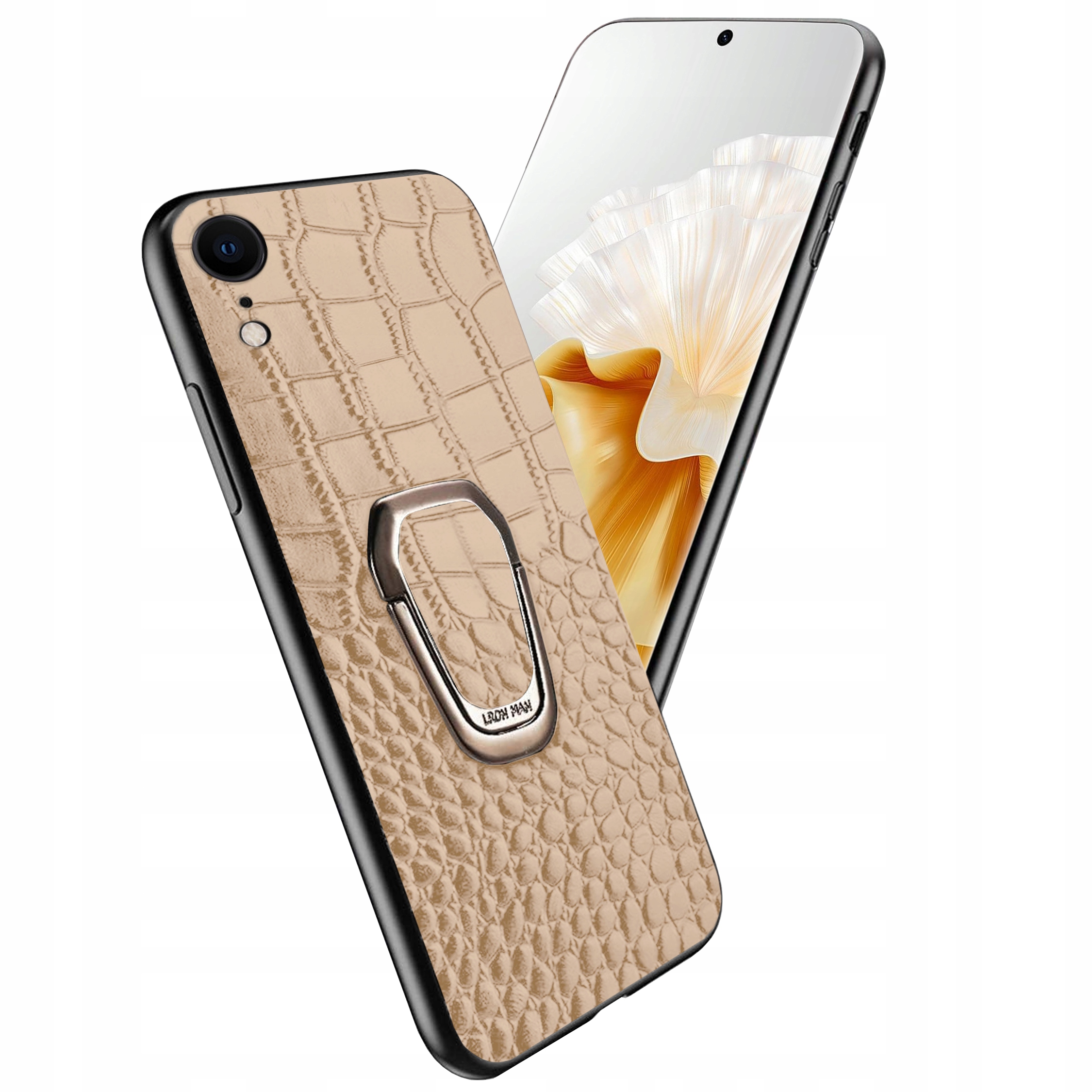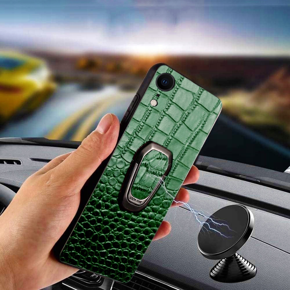 ETUI DO IPHONE XR SKÓRA KROKODYLA SKÓRZANE LUKSUSOWE CASE RING + SZKŁO