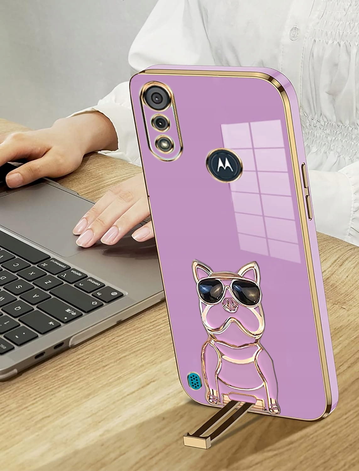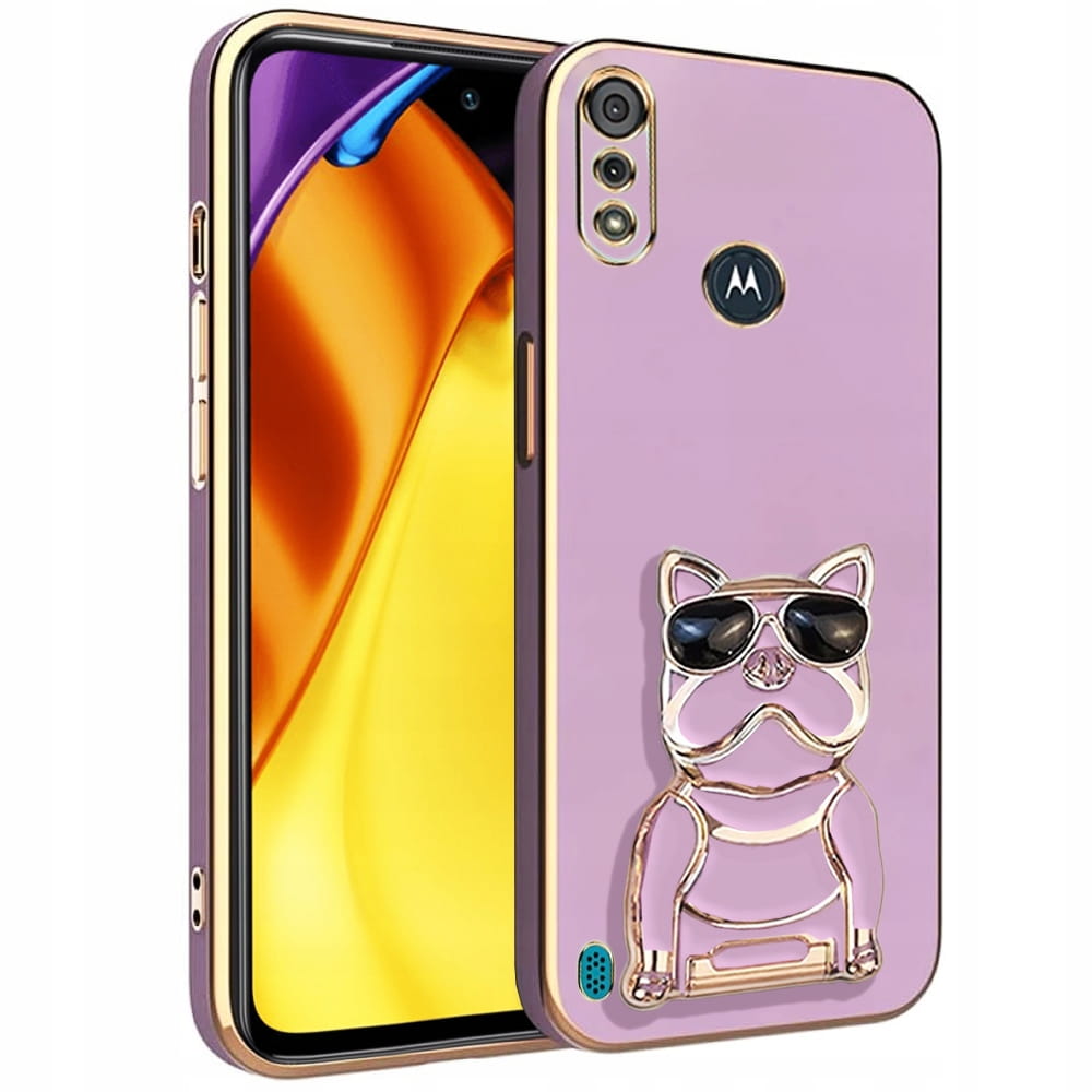 ETUI DO MOTOROLA MOTO E6s / E6i GLAMOUR SILIKON UCHWYT DOG CASE + SZKŁO