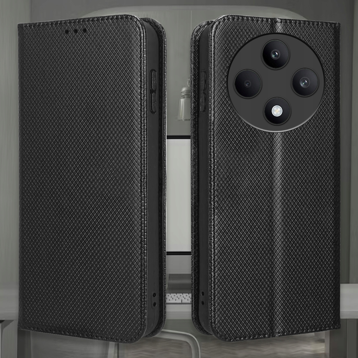 Etui z klapką w stylowej czarnej kratce to idealne połączenie designu i funkcjonalności. Świetnie sprawdzi się zarówno na co dzień, jak i w pracy czy podczas spotkań biznesowych