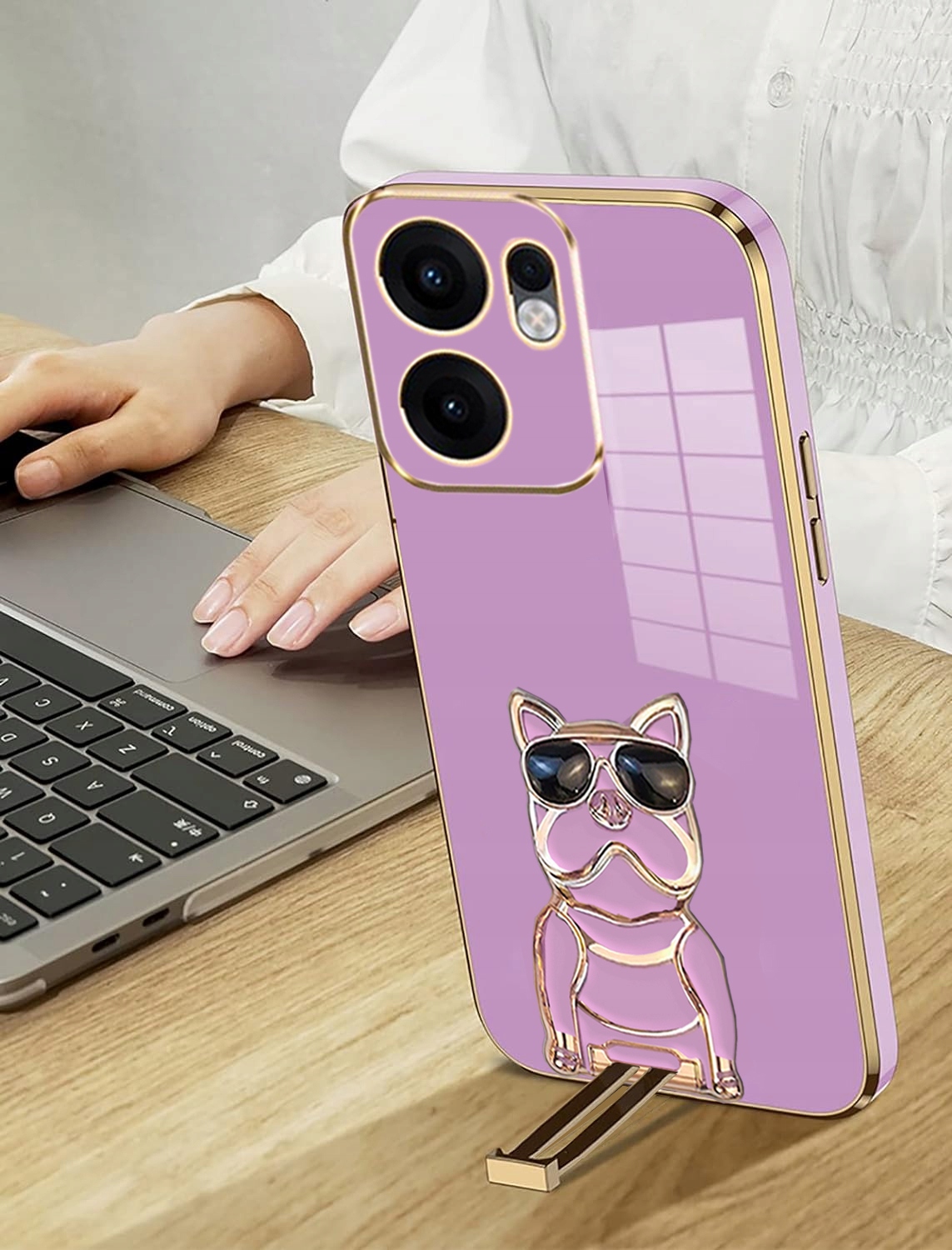 ETUI DO OPPO RENO13 F / FS GLAMOUR SILIKON UCHWYT PODSTAWKA DOG + SZKŁO