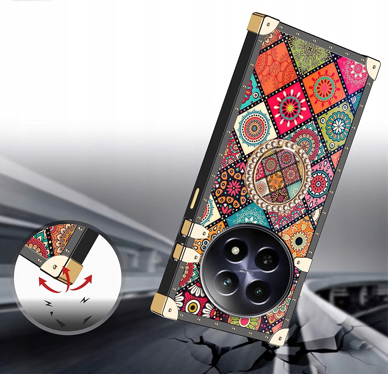 ETUI DO REALME 12 5G / 12X 5G LUKSUSOWE GLAMOUR MOZAIKA RING OCHRONA CASE