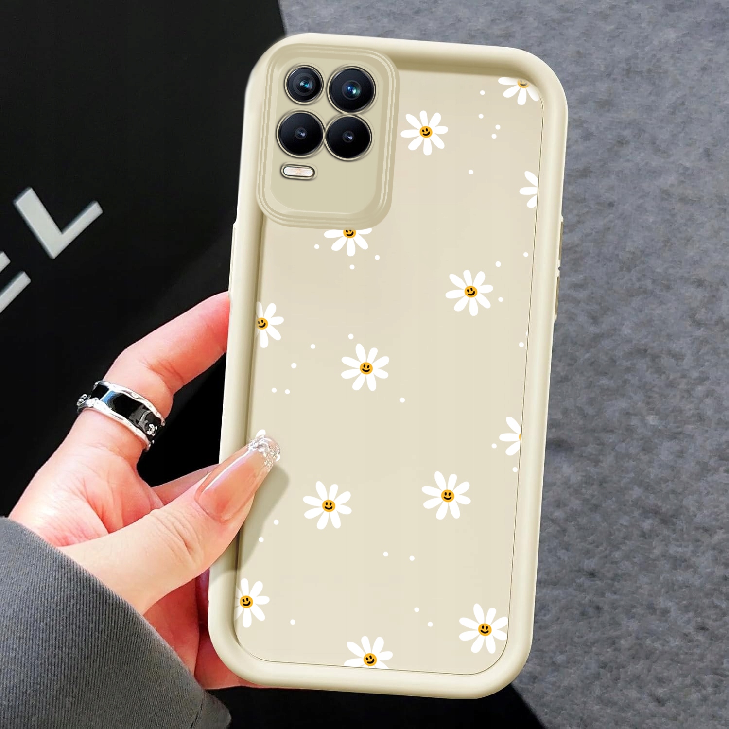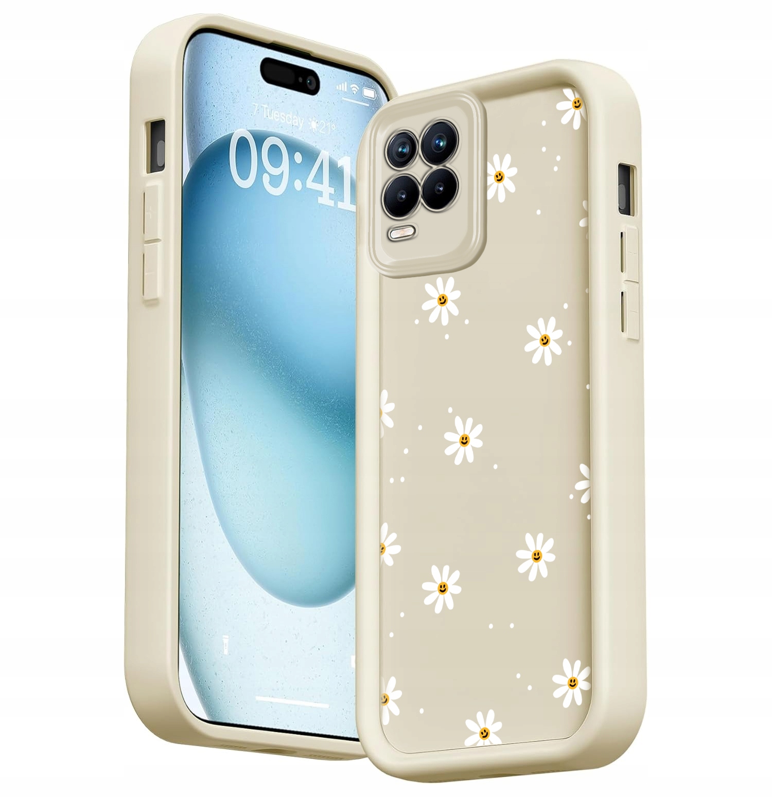 ETUI DO REALME 8 5G SILIKONOWE SOFT MATT OCHRONA APARATU Stokrotki + SZKŁO