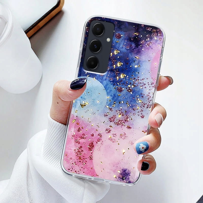 - Wzór ze złotymi drobinkami dodaje charakteru i świetnie sprawdzi się u wielbicieli prostoty i elegancji a drobinki w kolorze złota pięknie mienią się w słońcu.