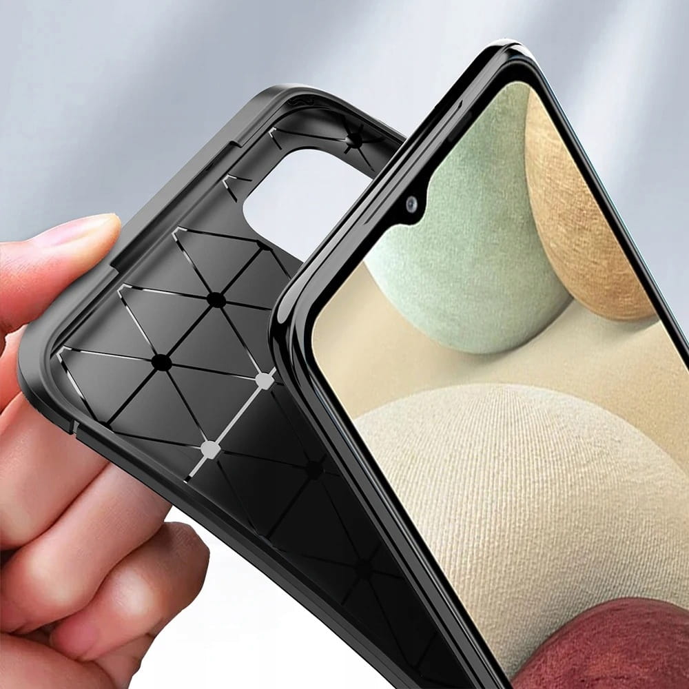 ETUI DO SAMSUNG A12 / M12 CARBON PANCERNE SILIKON KARBON SLIM CASE + SZKŁO