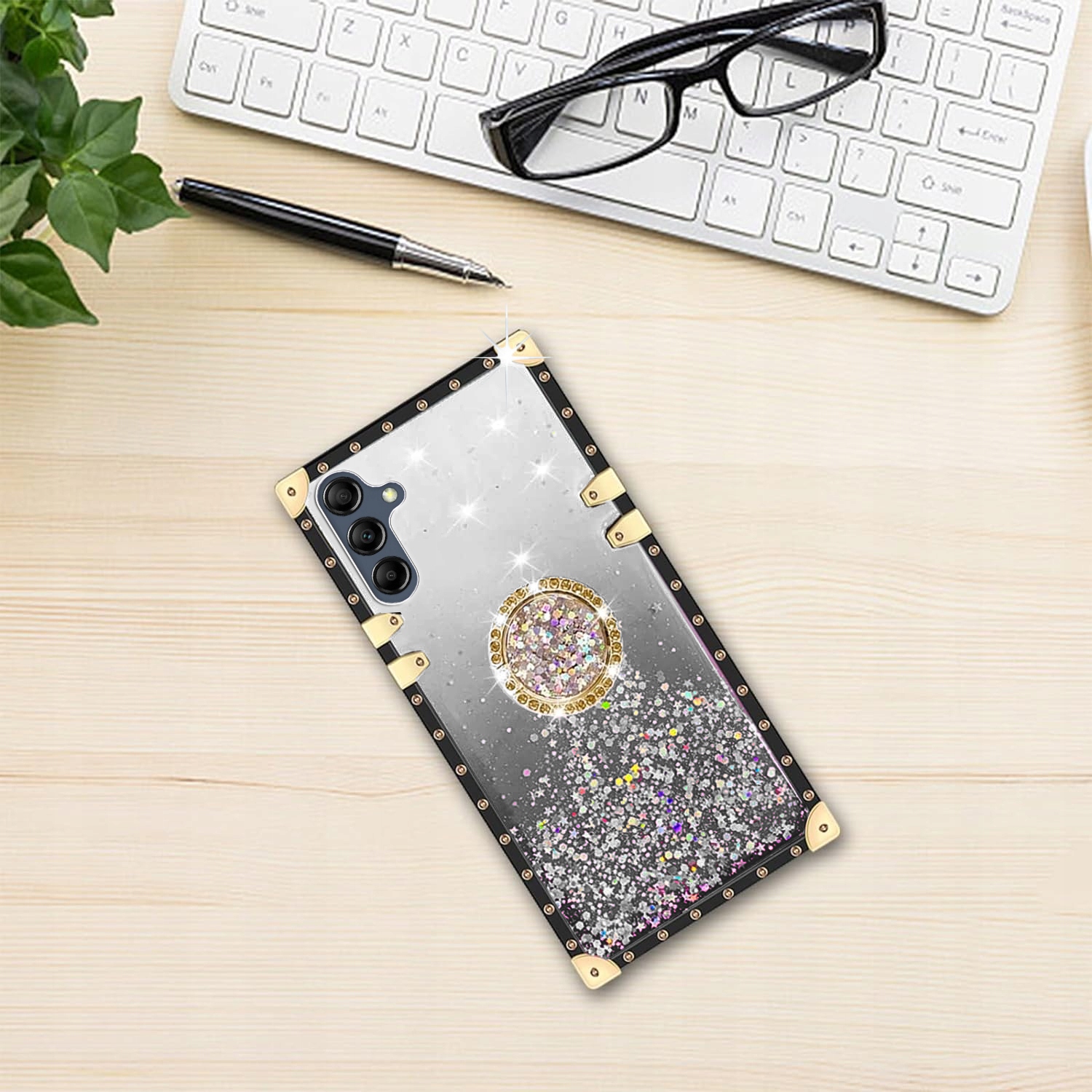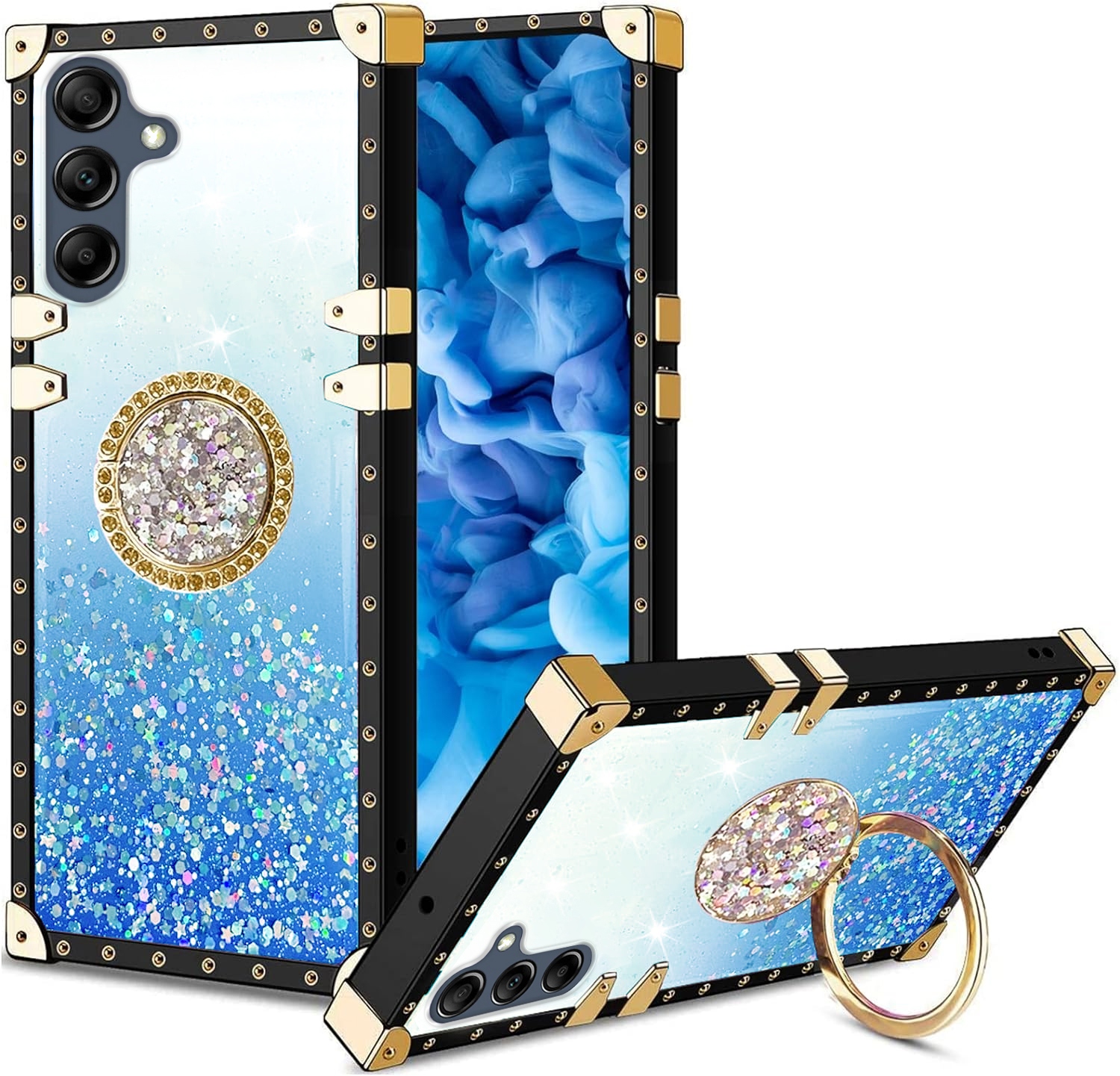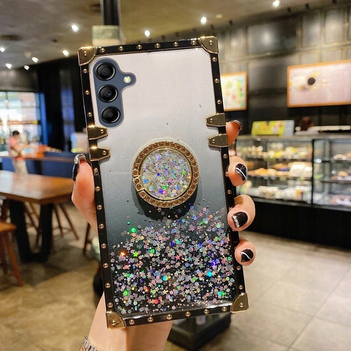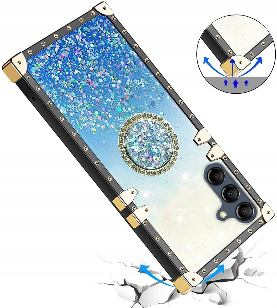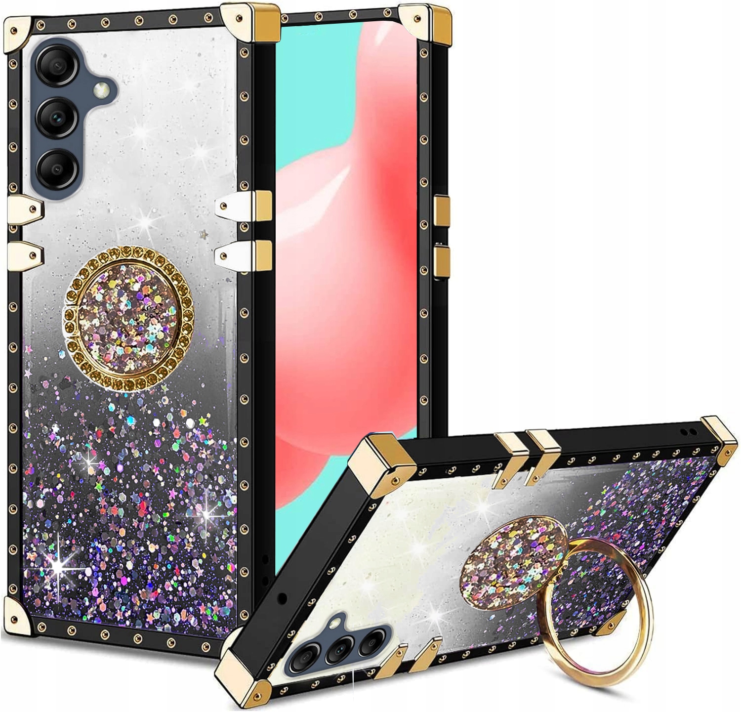 ETUI DO SAMSUNG A16 4G / A16 5G SILIKONOWE BROKAT GLITTER RING CASE + SZKŁO