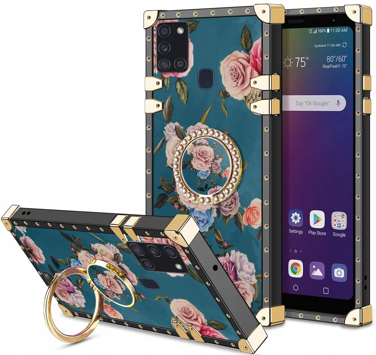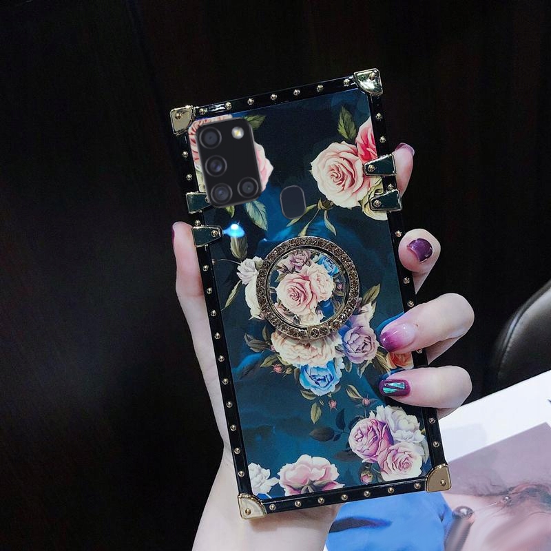 ETUI DO SAMSUNG A21S MOCNE RÓŻE RING CASE + SZKŁO