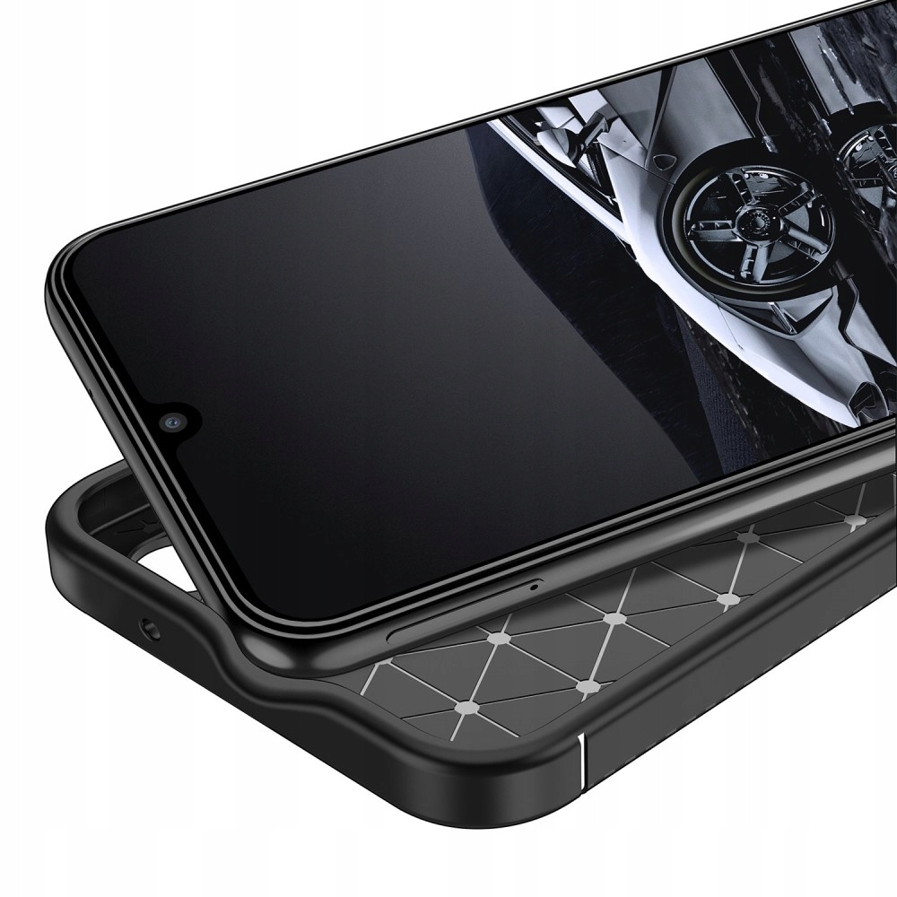 Etui jest eleganckie i nowoczesne, dzięki czarnemu kolorowi i karbonowej fakturze. Silikonowa obudowa jest wykonana z elastycznego materiału TPU , zapewnia skuteczną ochronę dzięki antypoślizgowej fakturze i wzmocnionym narożnikom.