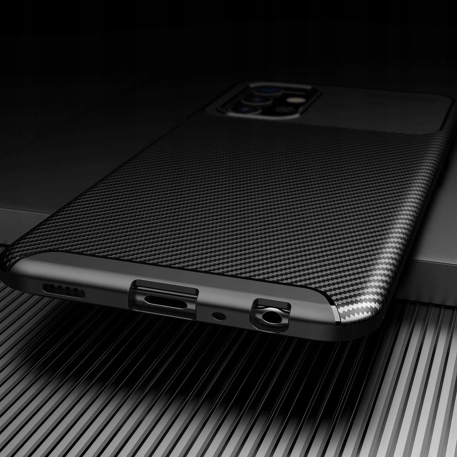 Etui jest eleganckie i nowoczesne, dzięki czarnemu kolorowi i karbonowej fakturze. Silikonowa obudowa jest wykonana z elastycznego materiału TPU , zapewnia skuteczną ochronę dzięki antypoślizgowej fakturze i wzmocnionym narożnikom.