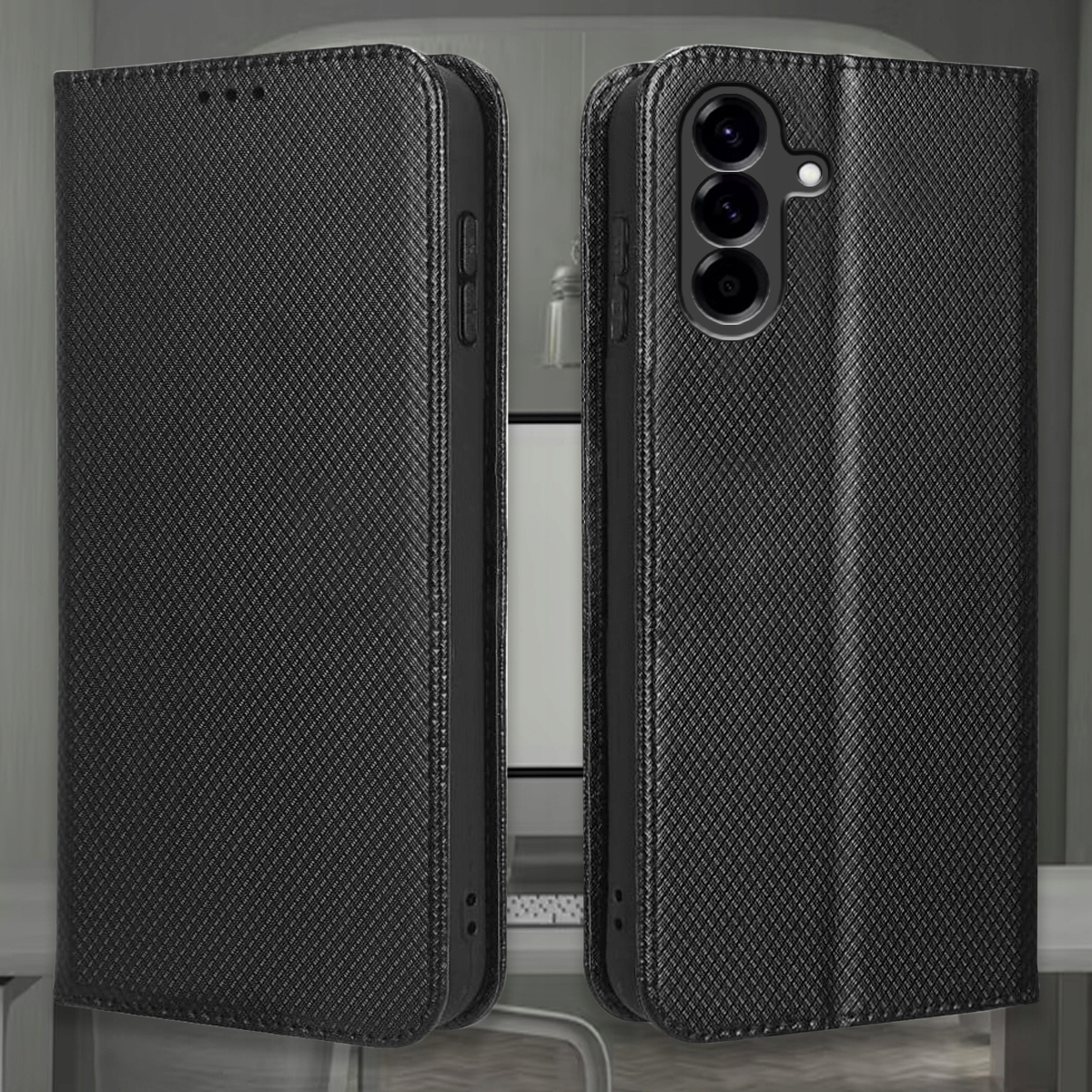 Etui z klapką w stylowej czarnej kratce to idealne połączenie designu i funkcjonalności. Świetnie sprawdzi się zarówno na co dzień, jak i w pracy czy podczas spotkań biznesowych