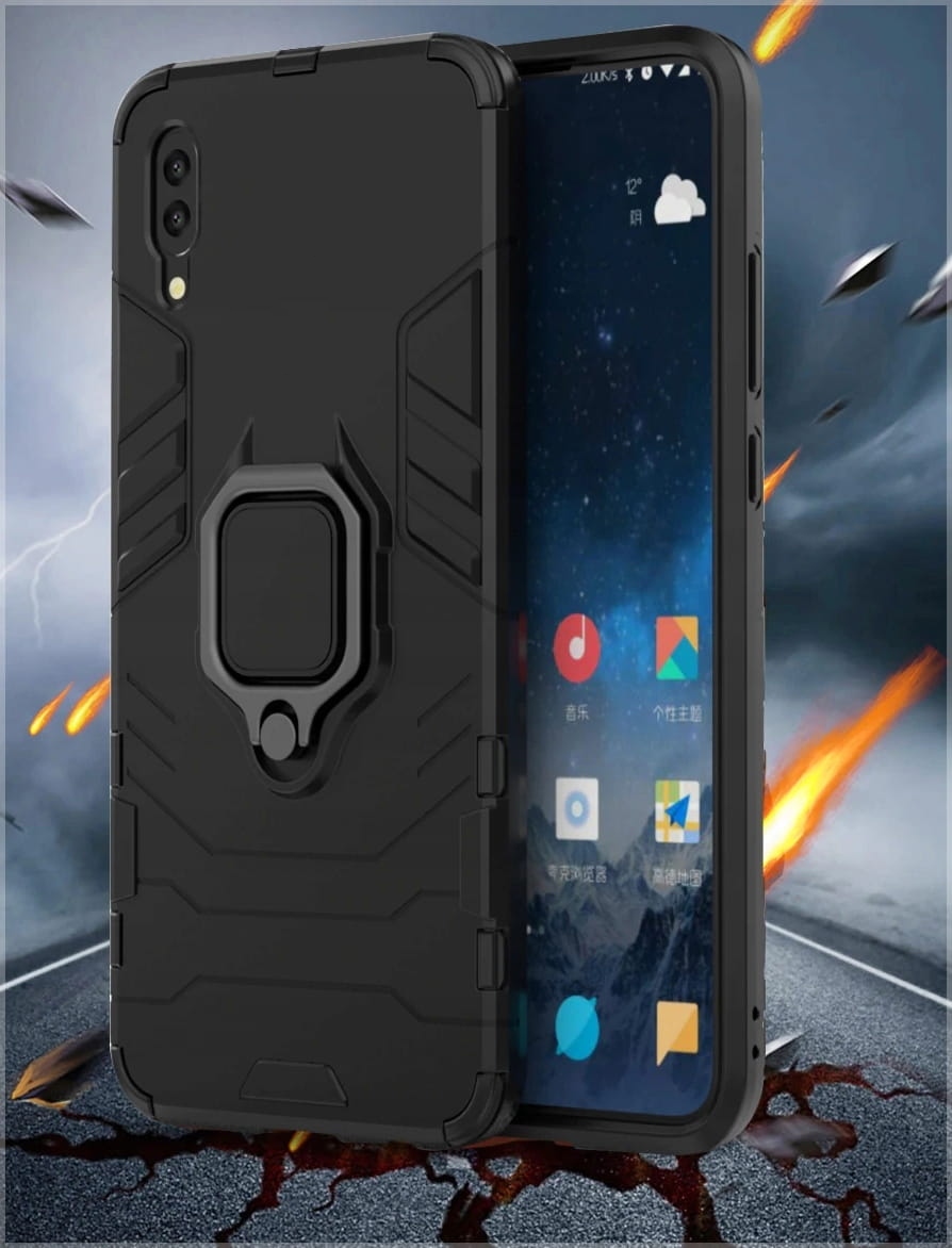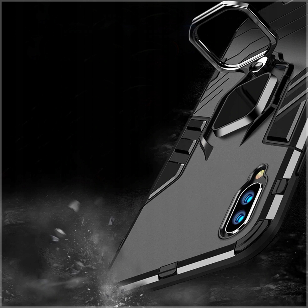 Pancerne etui o innowacyjnym designie. Posiada pierścień do trzymania telefonu oraz blaszkę, dzięki czemu etui jest idealne do używania z magnetycznym uchwytem samochodowym.