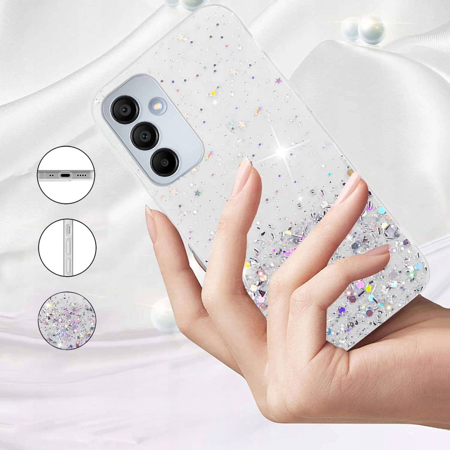 ⭐ Hybrydowe etui z warstwą błyszczącego brokatu