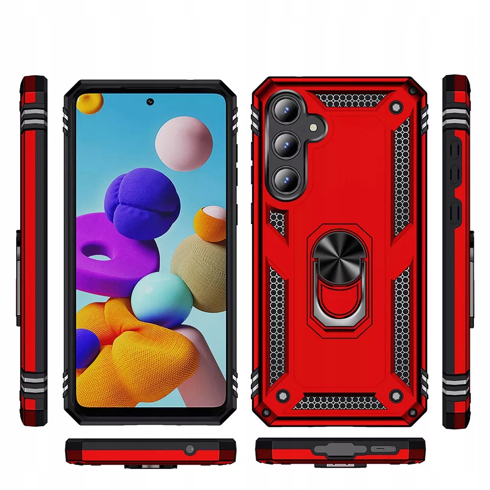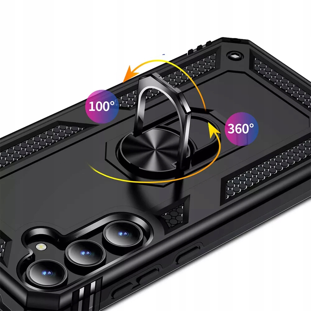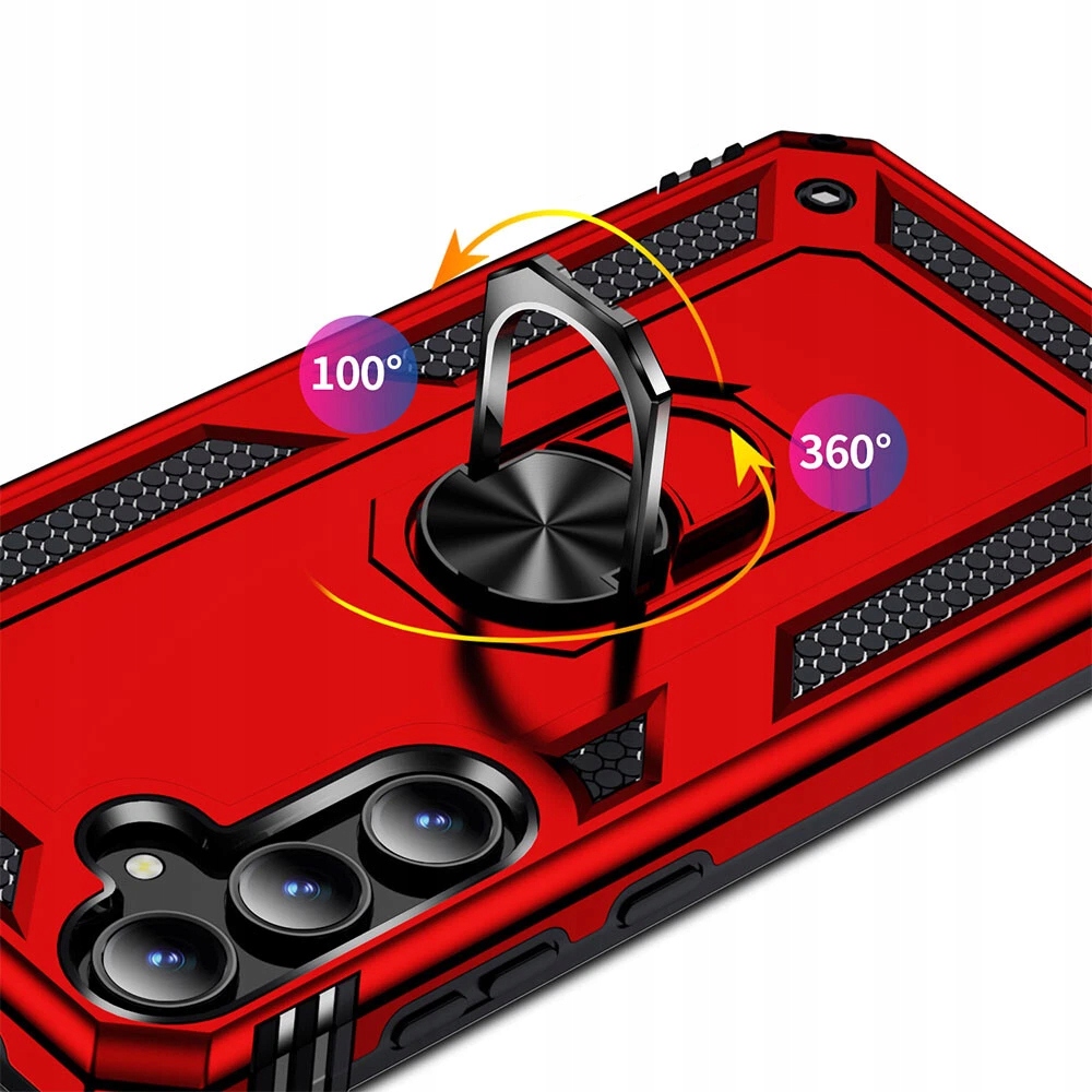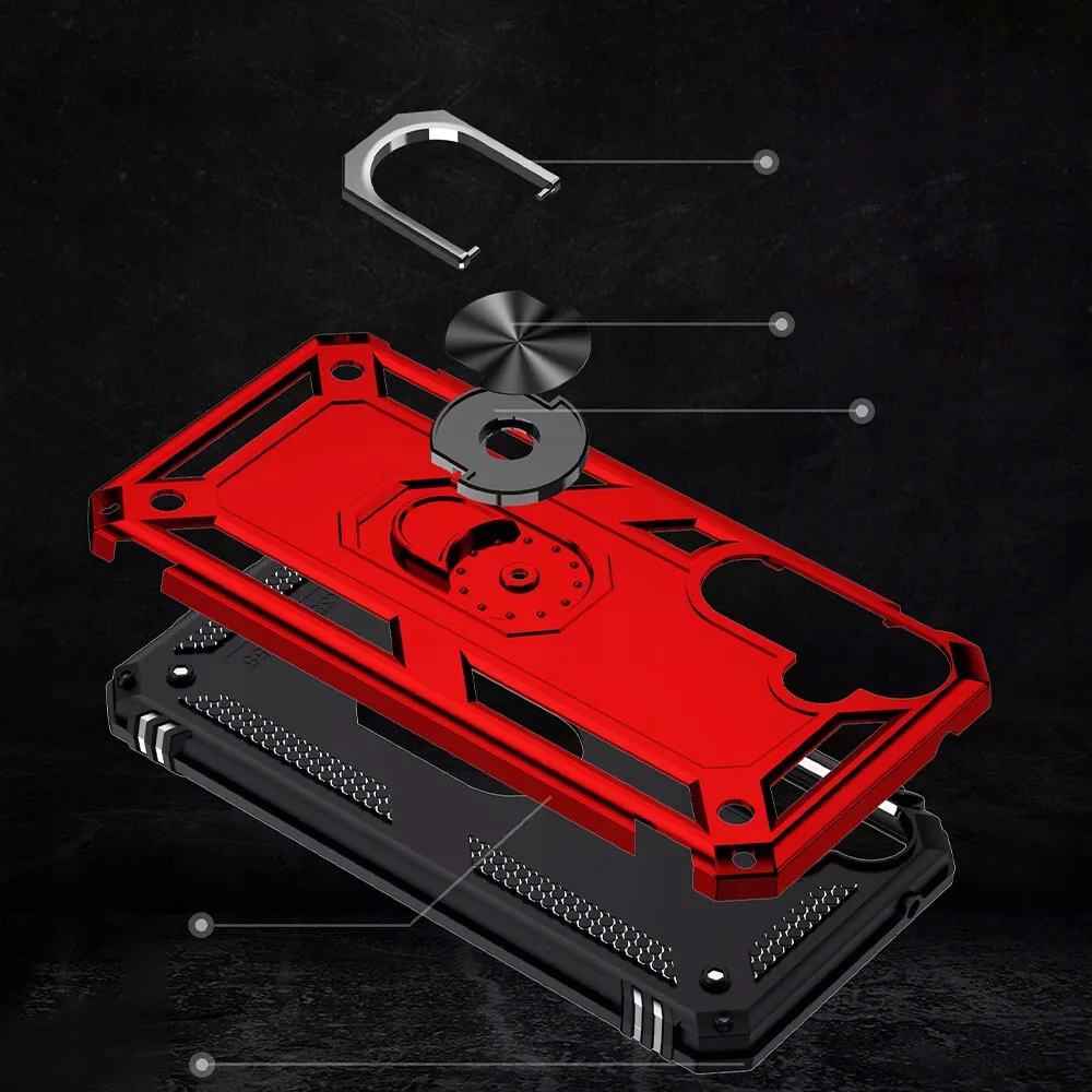 Pancerne etui to konstrukcja dwa w jednym z PC i TPU, z obudową PC, która jest mocna, trwała i odporna na wstrząsy , podszyte TPU, dobra elastyczność. Posiada pierścień do trzymania telefonu oraz blaszkę, dzięki czemu etui jest idealne do używania z magnetycznym uchwytem samochodowym.
