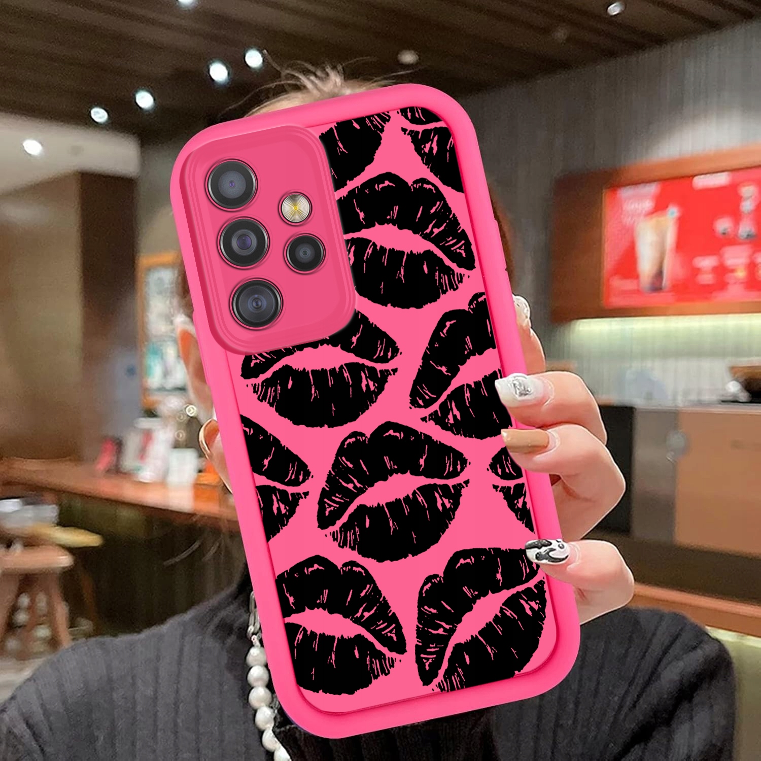 z Luksusowy i modny Nadrukiem z czarnymi Ustami KISS