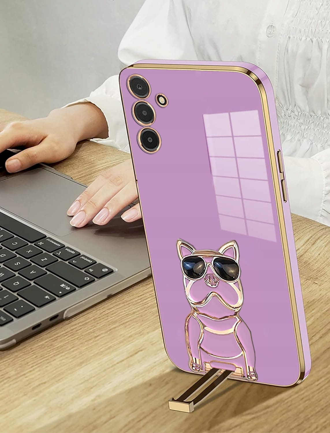 - W Zestawie Stojak w kształcie pieska można używać do rozmów wideo lub oglądania programów w pionie i poziomie, całkowicie uwalniając ręce.