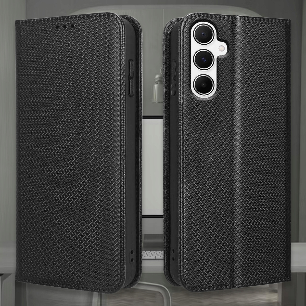 Etui z klapką w stylowej czarnej kratce to idealne połączenie designu i funkcjonalności. Świetnie sprawdzi się zarówno na co dzień, jak i w pracy czy podczas spotkań biznesowych