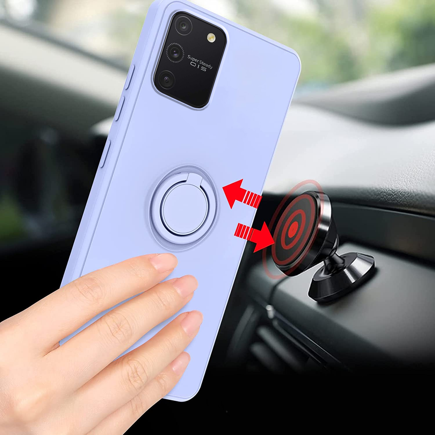 - Magnetyczny ring można bezpośrednio przymocować na magnetycznym uchwycie samochodowym, zapewniając bezproblemową jazdę.