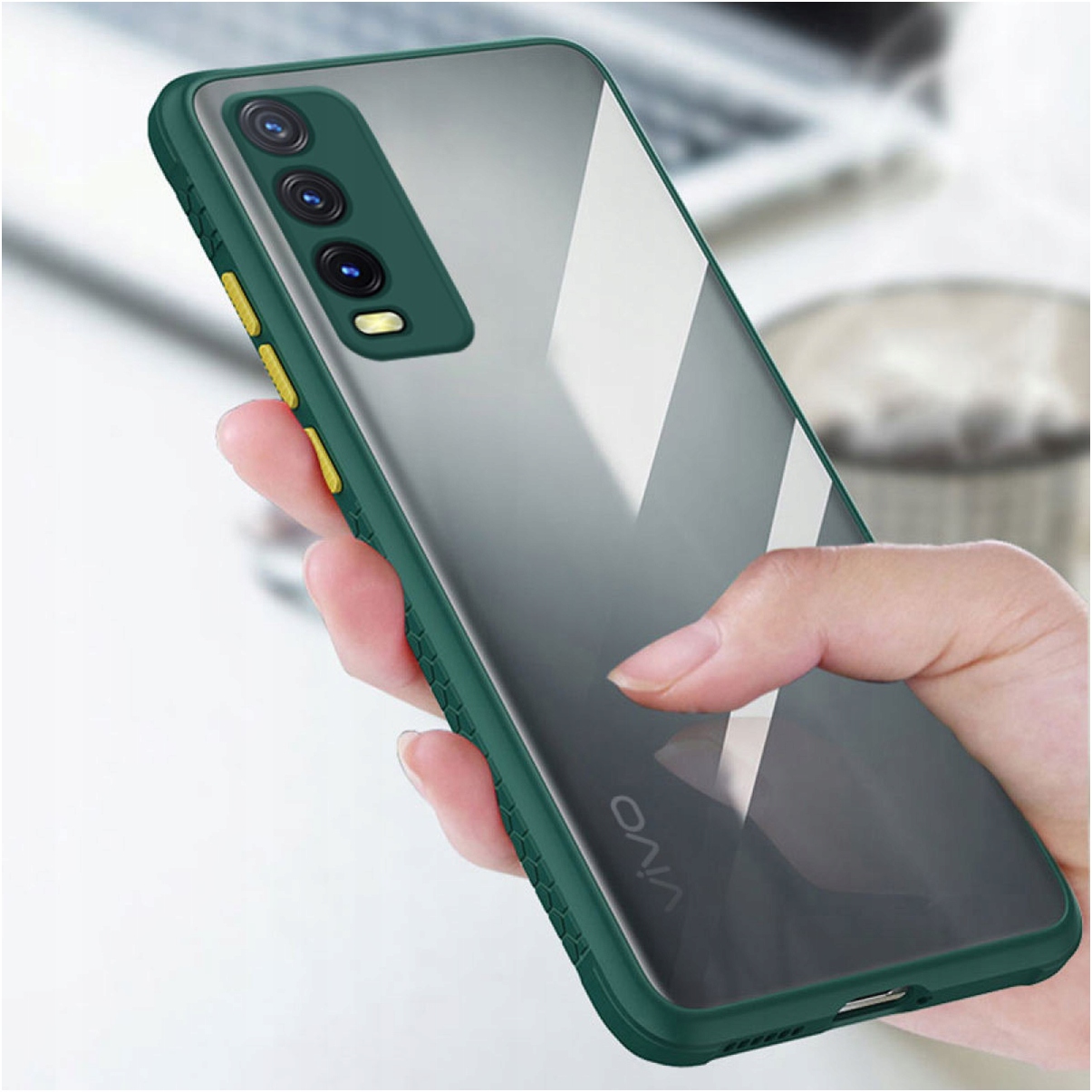 Tył etui wykonany jest z półprzezroczystego matowego materiału najwyższej jakości. Dodatkowo posiada kolorowe przyciski, które nadają etui eleganckiego oraz nowoczesnego designu.