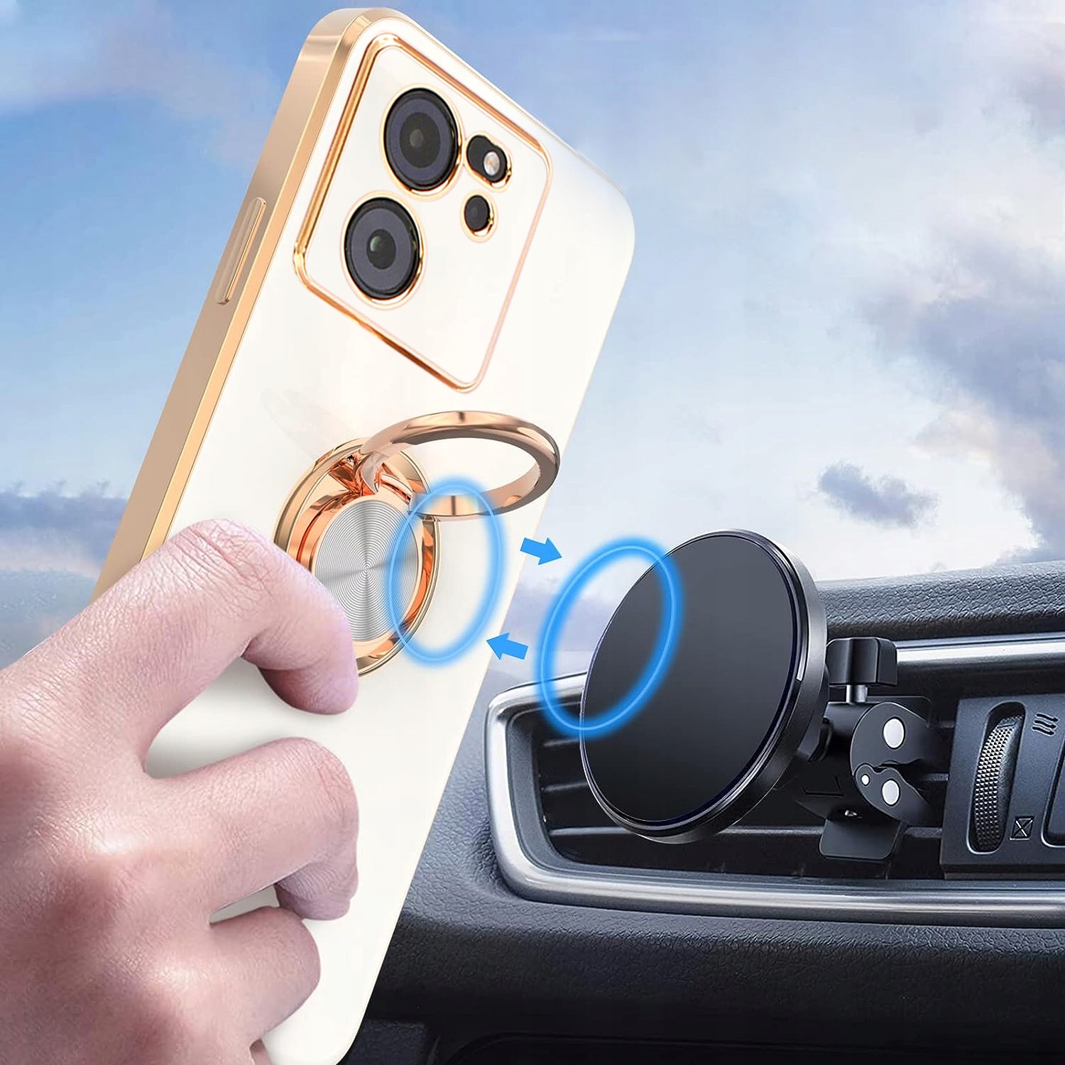 - Magnetyczny ring można bezpośrednio przymocować na magnetycznym uchwycie samochodowym, zapewniając bezproblemową jazdę.