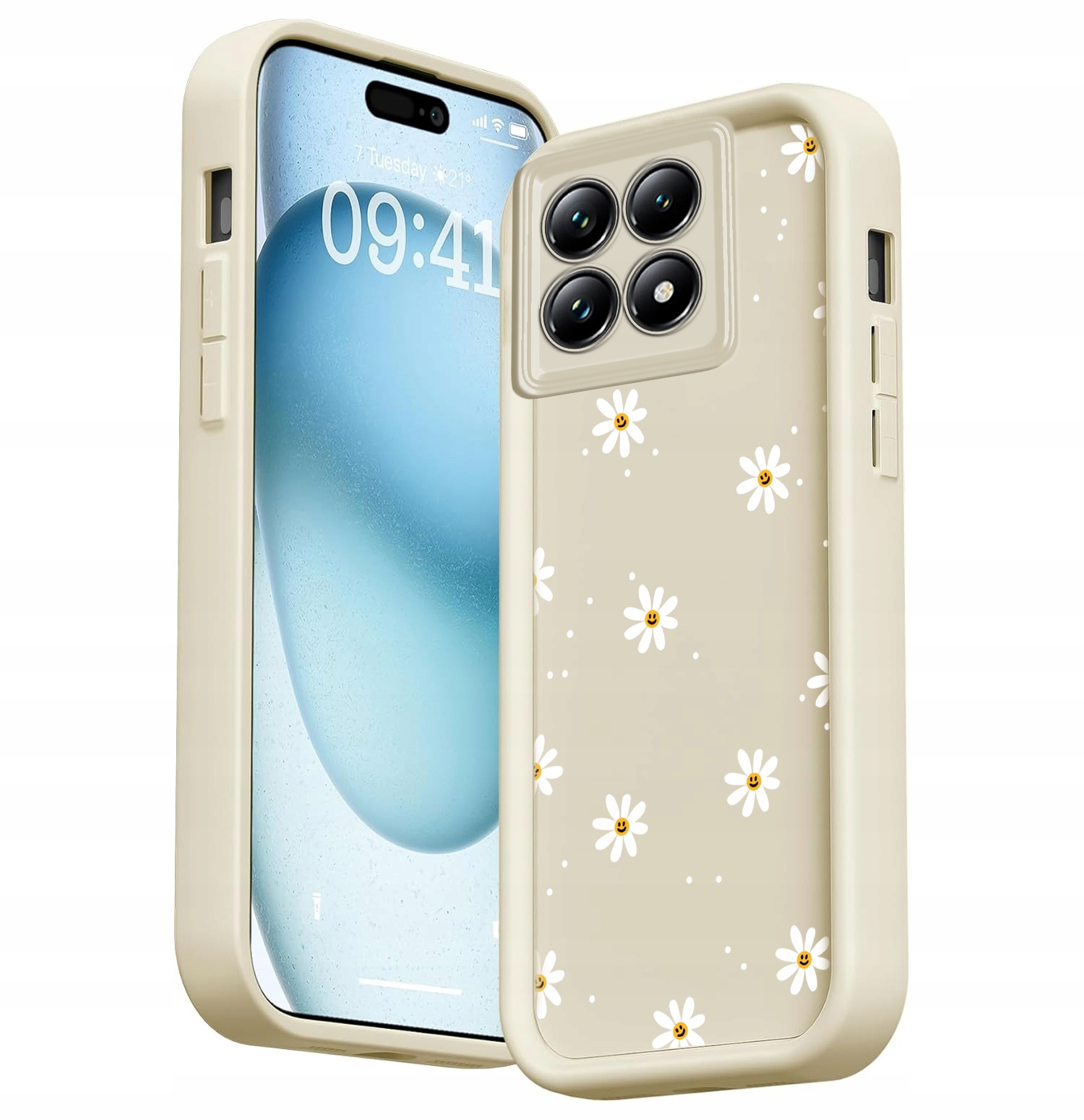 ETUI DO XIAOMI 14T PRO SILIKONOWE SOFT OCHRONA APARATU Stokrotki + SZKŁO