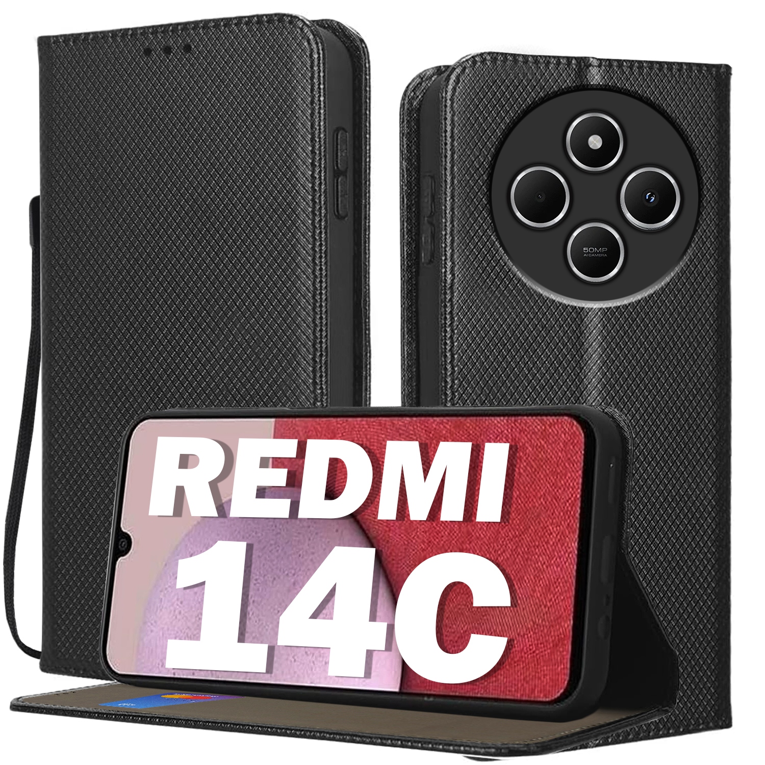 ETUI DO XIAOMI REDMI 14C BOOK Z KLAPKĄ MAGNETYCZNE PORTFEL CASE + SZKŁO