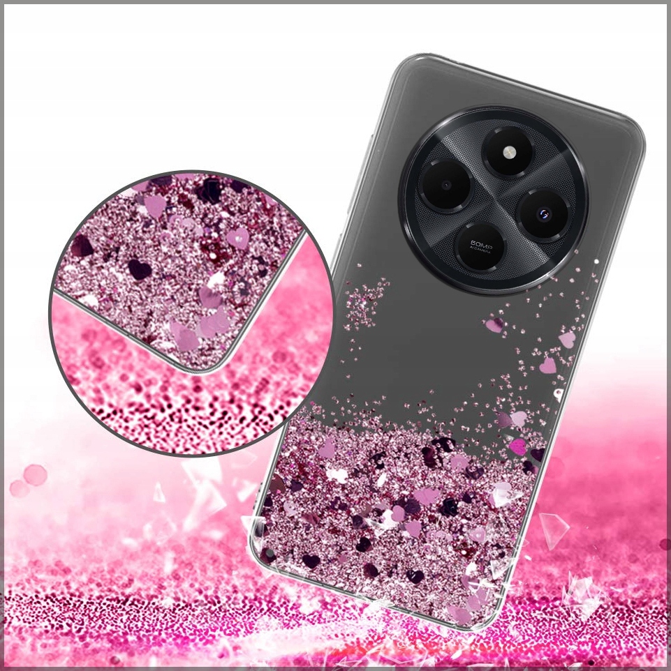 ETUI DO XIAOMI REDMI 14C SILIKONOWE BROKATOWE LIQUID GLITTER CASE + SZKŁO