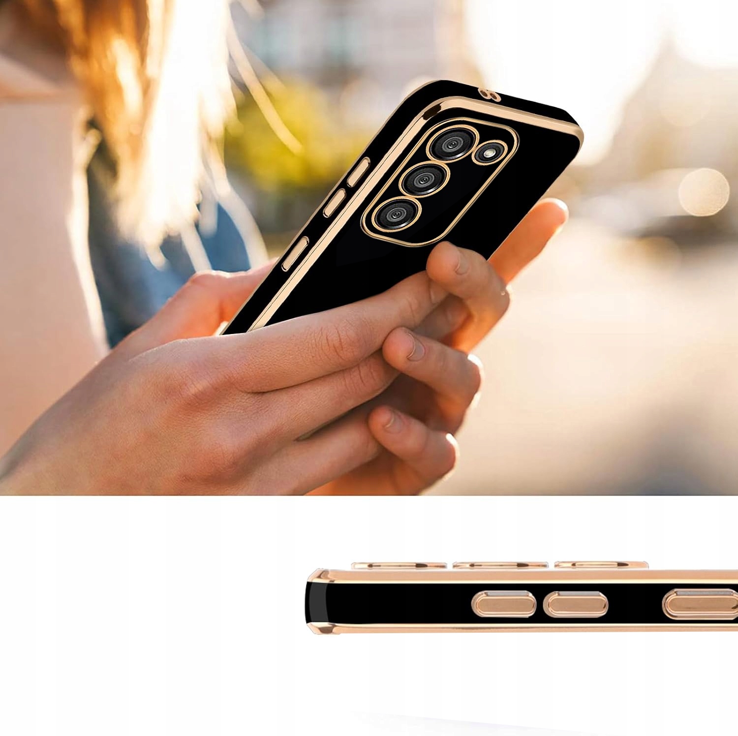 HIT! Luksusowe błyszczące etui złotą ramką . Jest to model wyjątkowo uniwersalny – pasuje każdemu i świetnie sprawdzi się w każdej sytuacji!