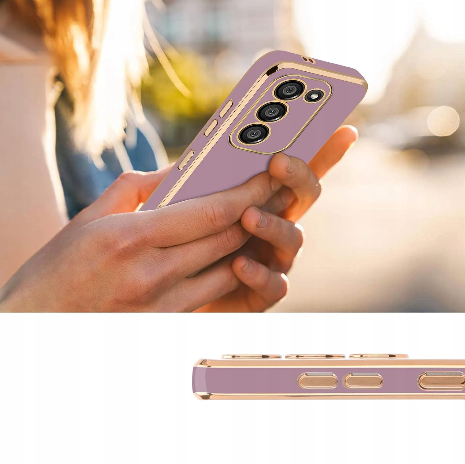 Silikonowa obudowa jest wykonana z elastycznego materiału TPU. Etui jest gładkie w dotyku, błyszczący wzór powierzchni i złote krawędzie nadają telefonowi inny wygląd i zapewniają pełną ochronę telefonu.