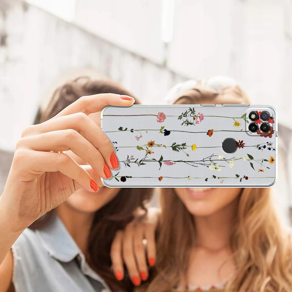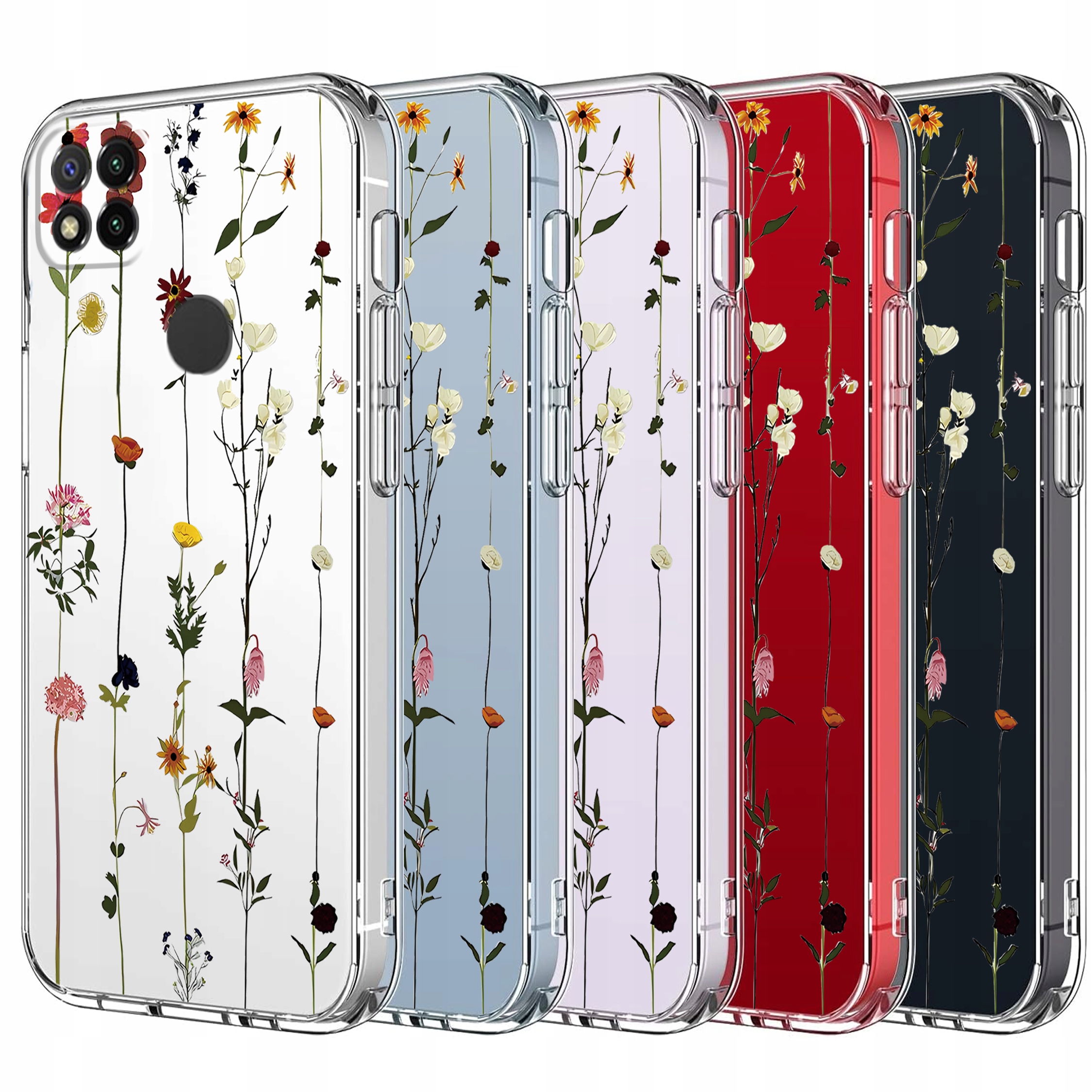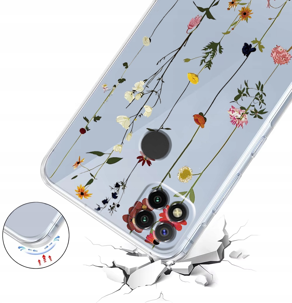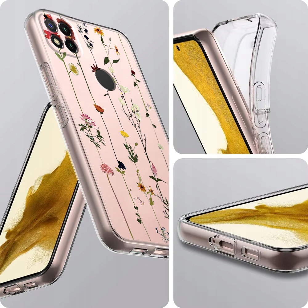ETUI DO XIAOMI REDMI 9C Przezroczyste KWIATY SILIKON OCHRONA CASE + SZKŁO